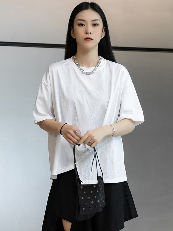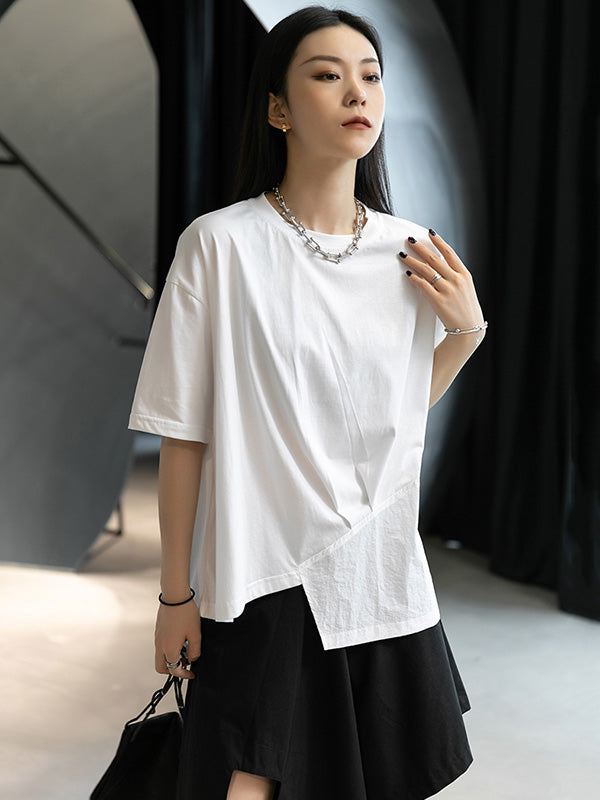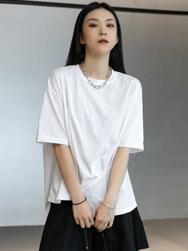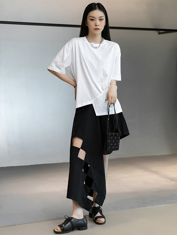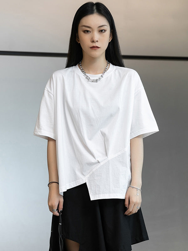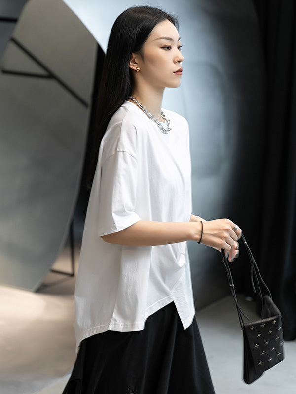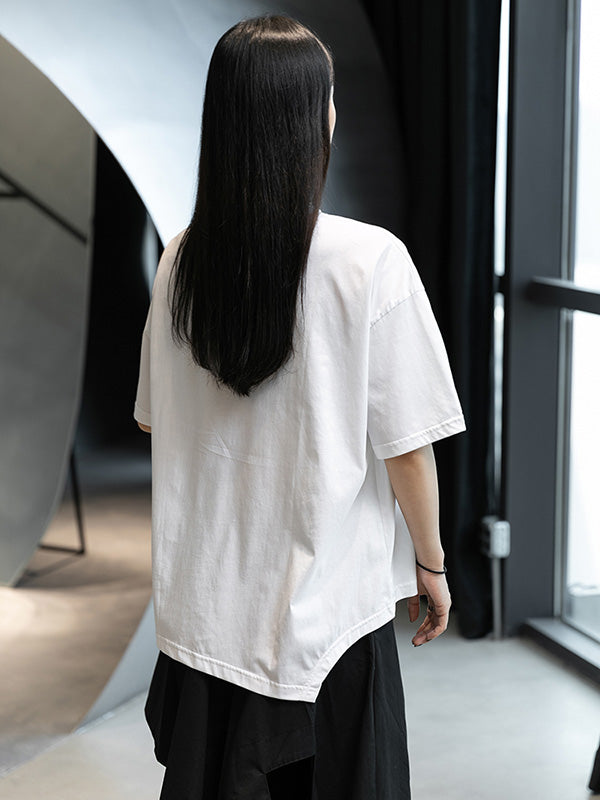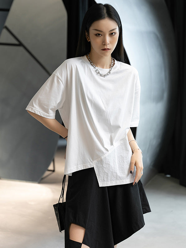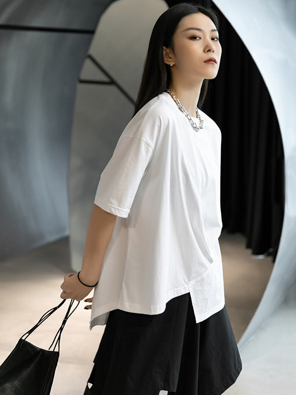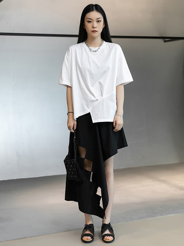 Stylish White Round-Neck Asymmetric Split-Joint T-Shirt
