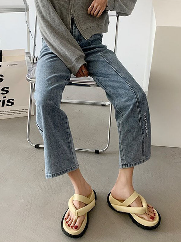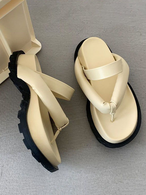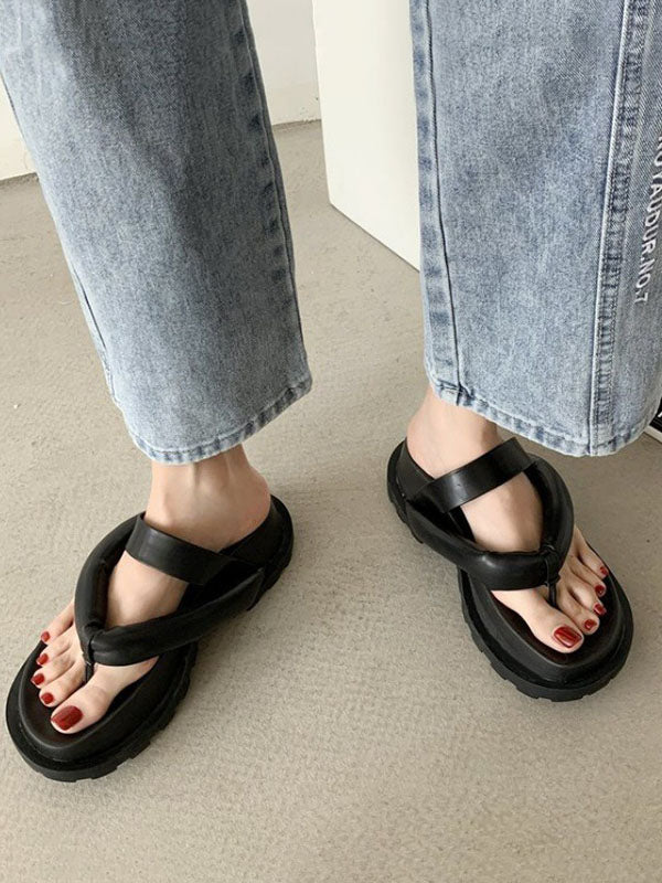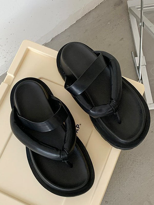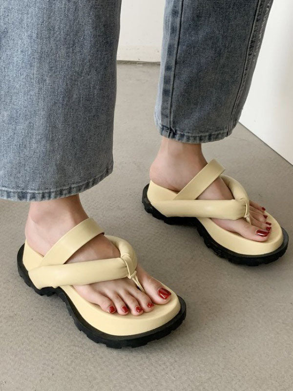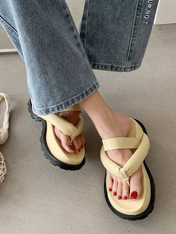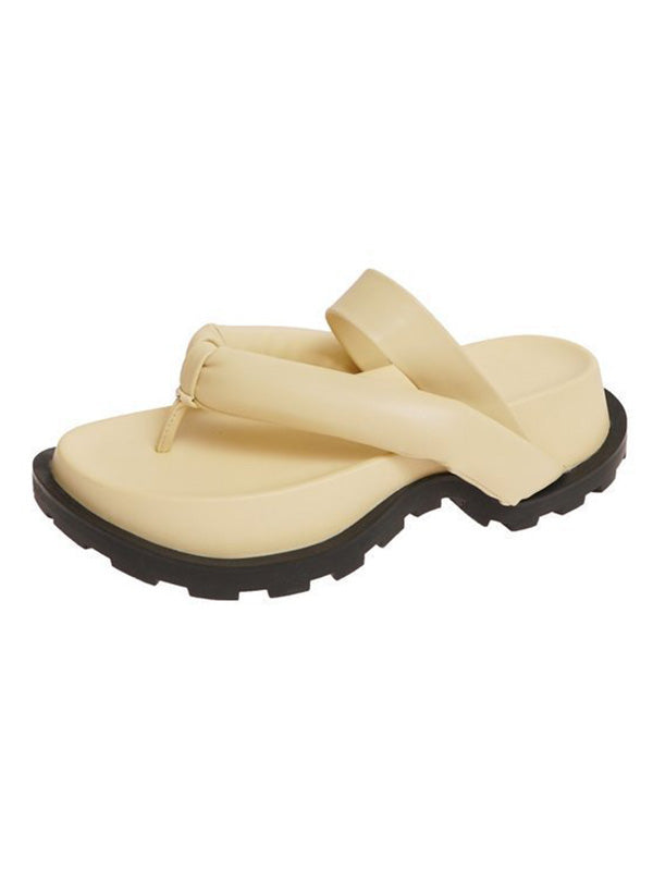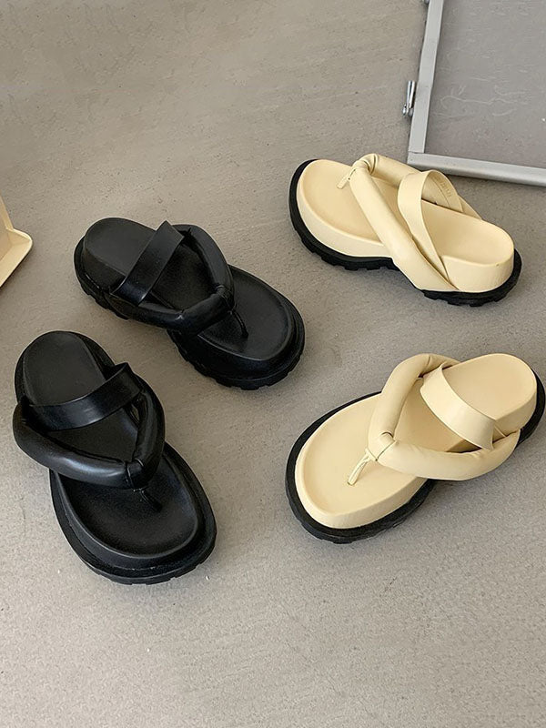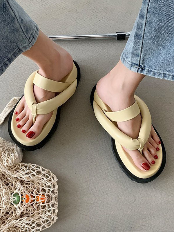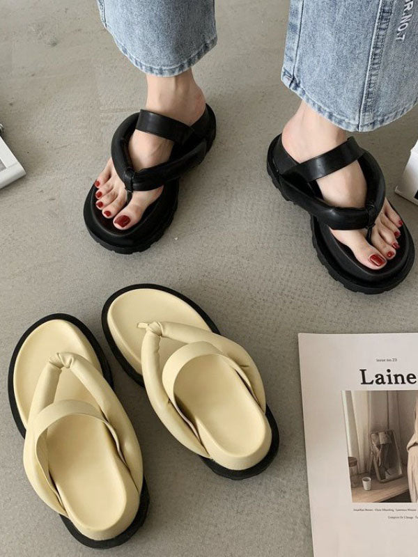 Stylish Yellow&Black Flip Flops Flatform Slippers