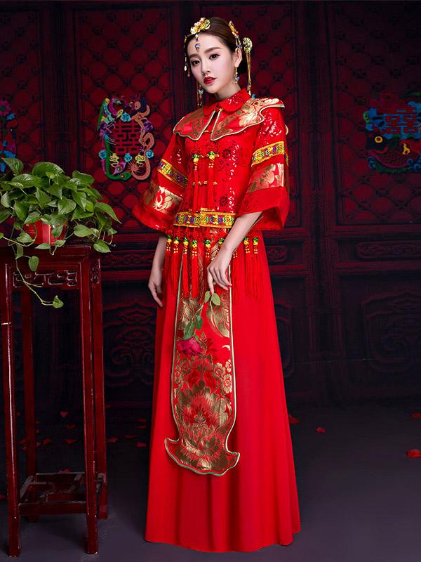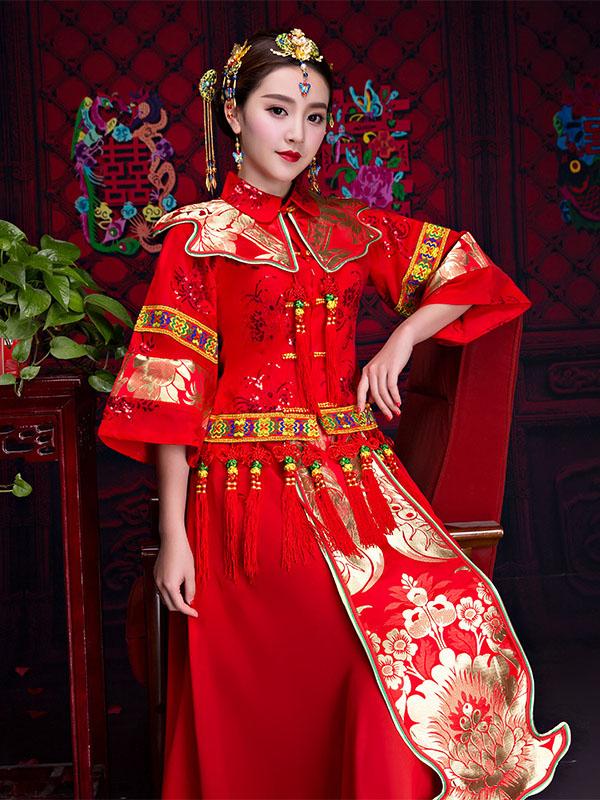 Summer Chiffon Embroidered Draping Lapel Xiuhe Suit Toast Suit Wedding Dress