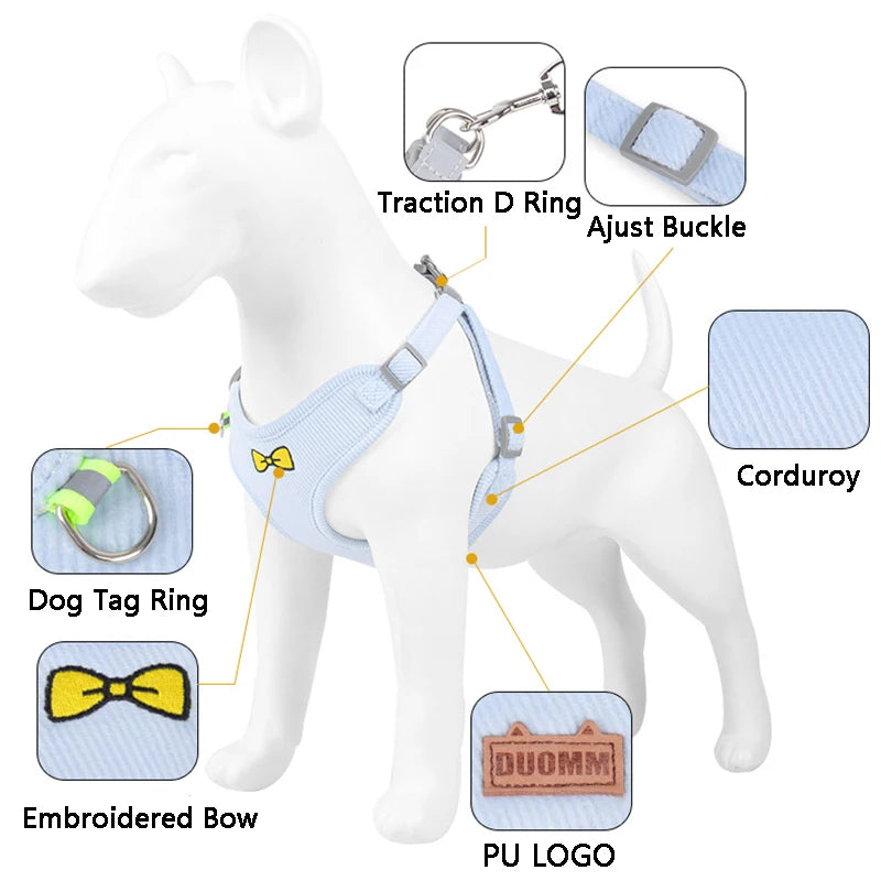 Summer Corduroy Dog Harness and Leash Set for Small Medium Dogs Breathable Puppy Cat Harness Vest Pet Chihuahua Walking Leash