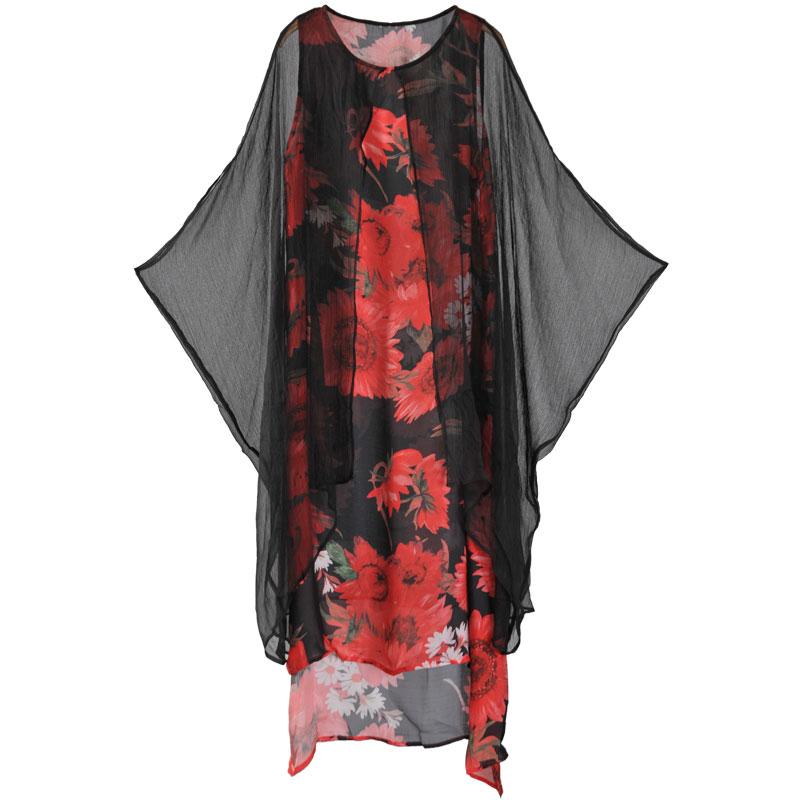 Summer Fake Two Pieces Red Flower Printed Short Sleeve Dress