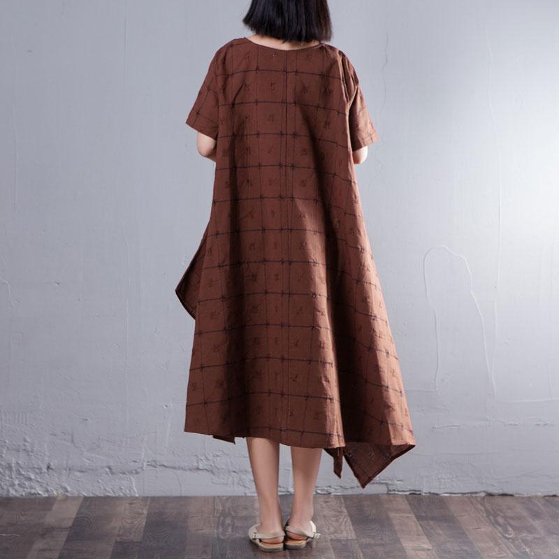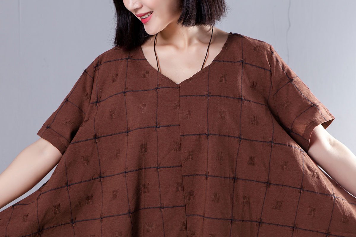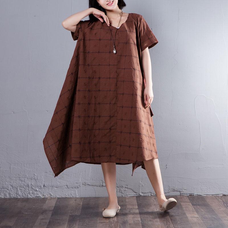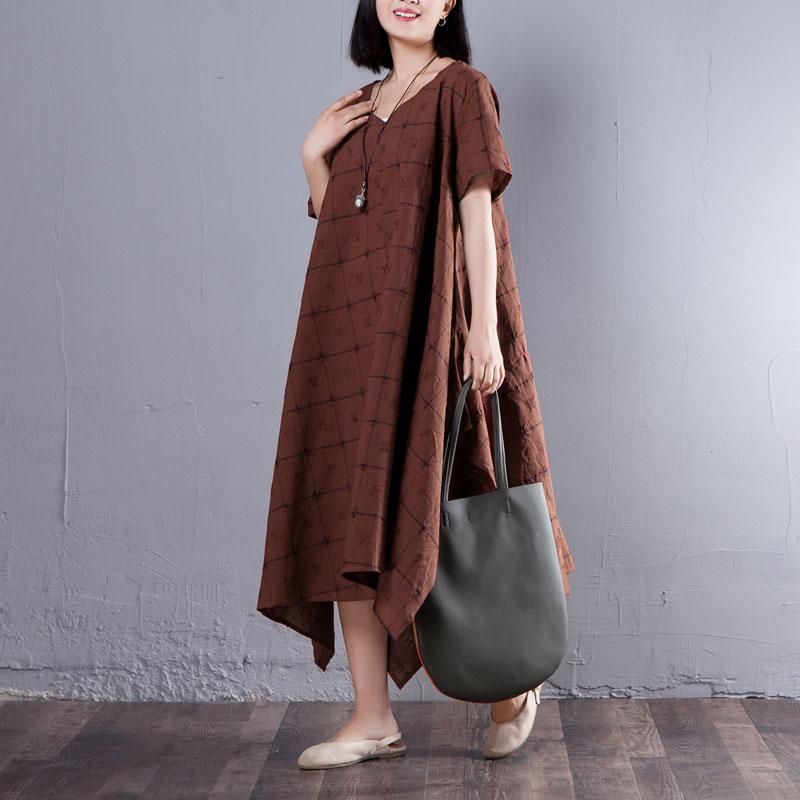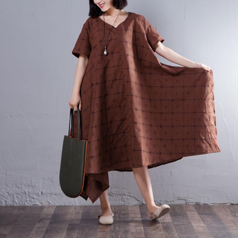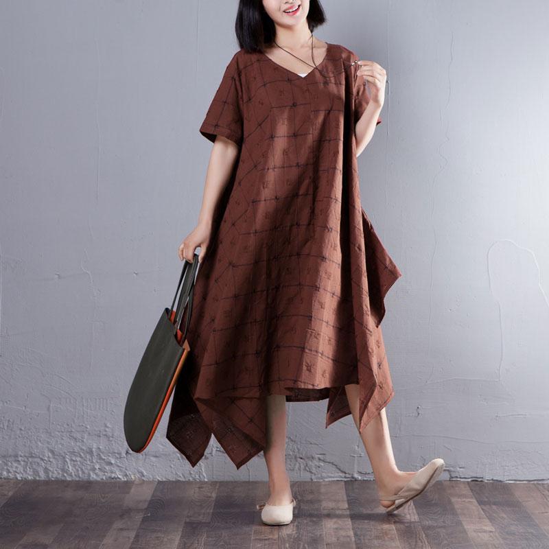 Summer V Neck Short Sleeve Loose Lattice Red Dress