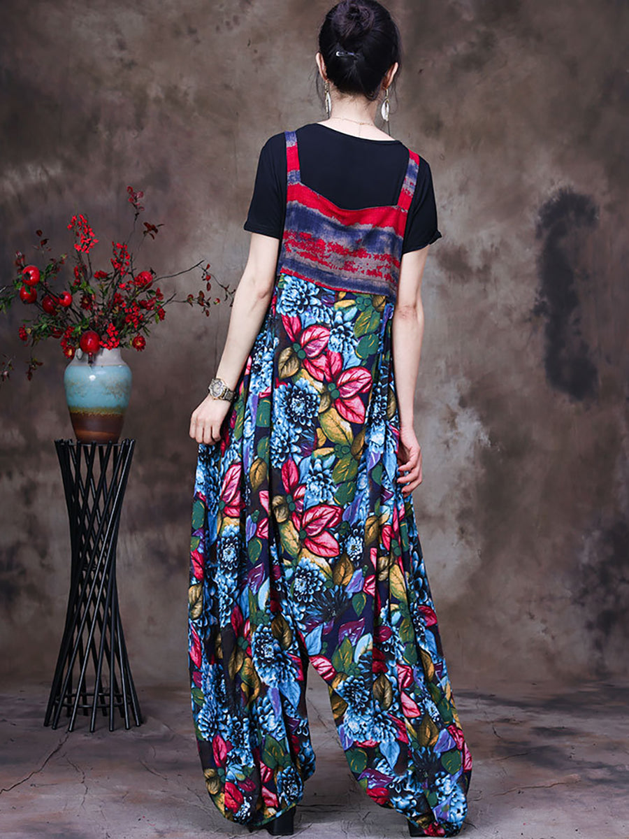 Summer Vintage Floral Women Retro Jumpsuit