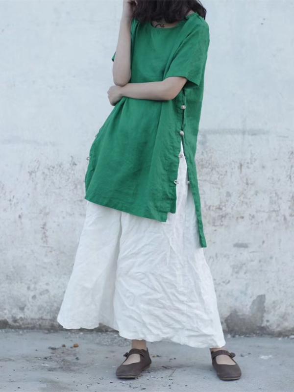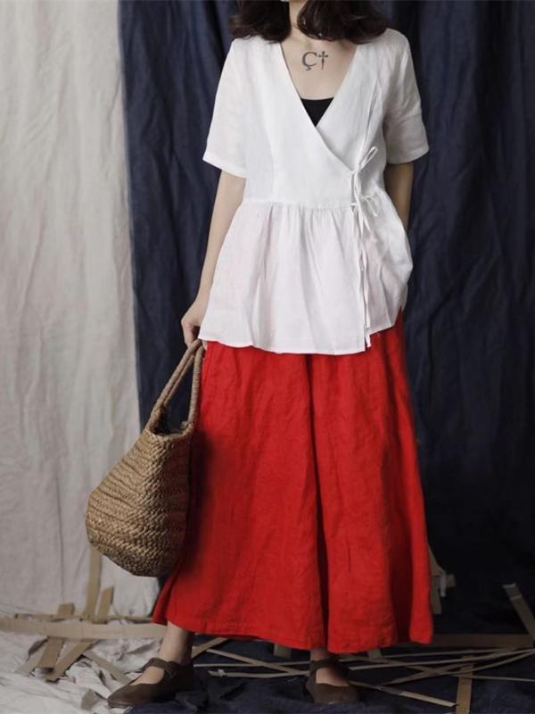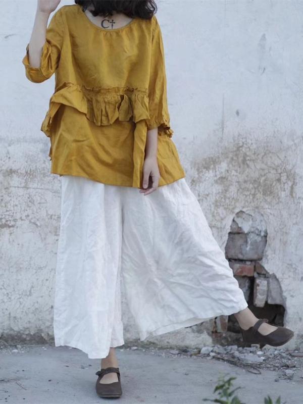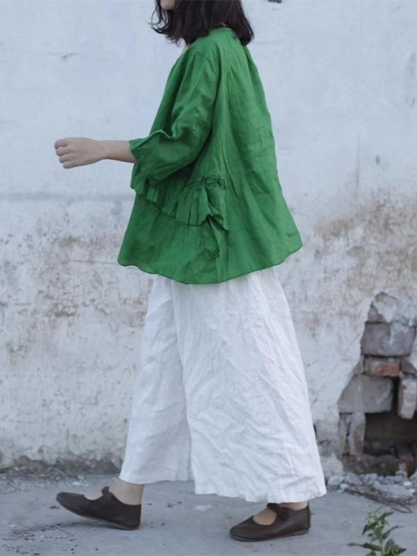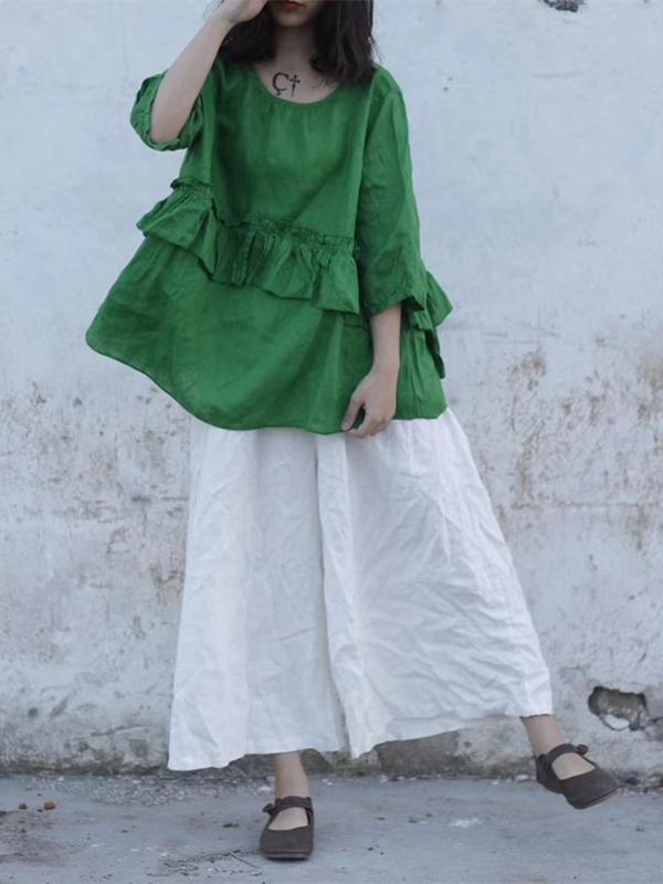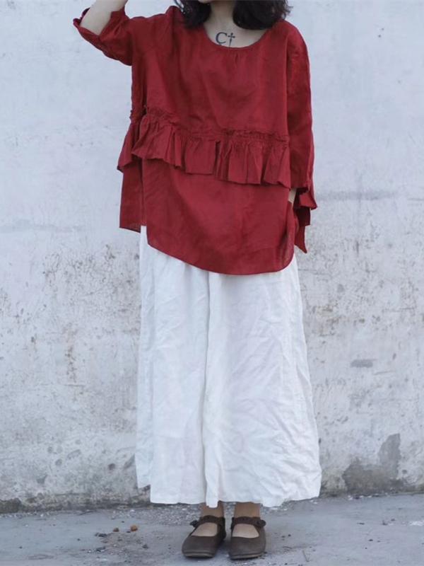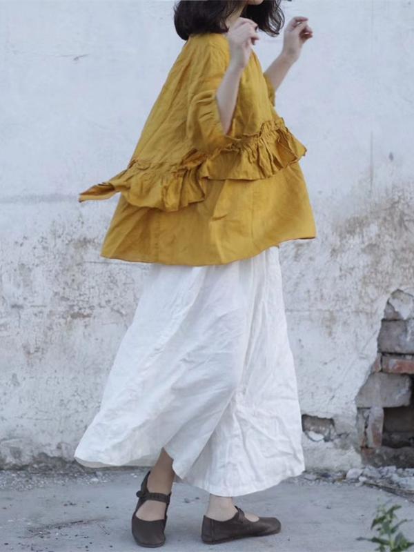 4 Colors Loose Falbala Linen Cotton Shirt