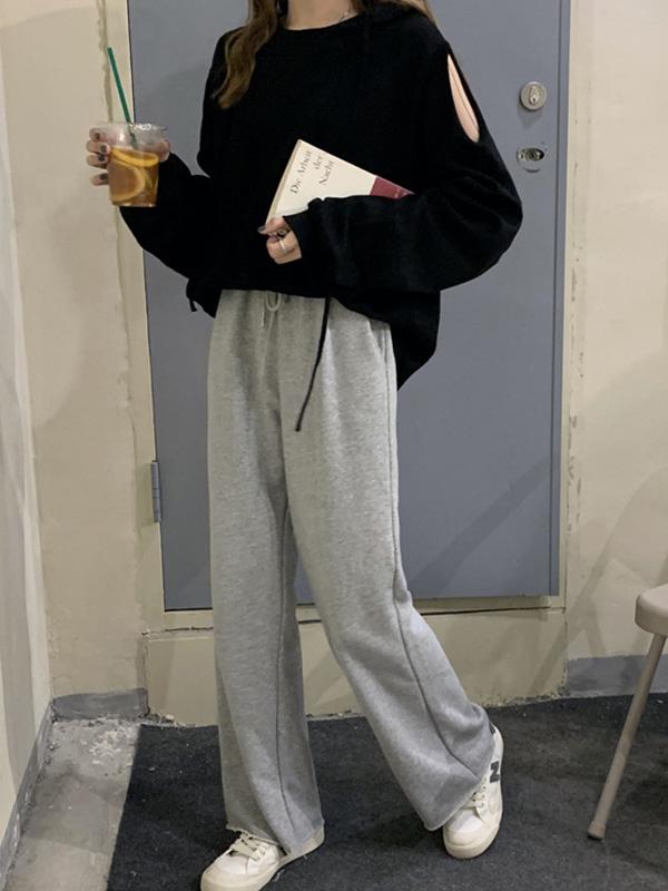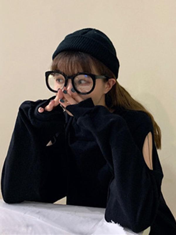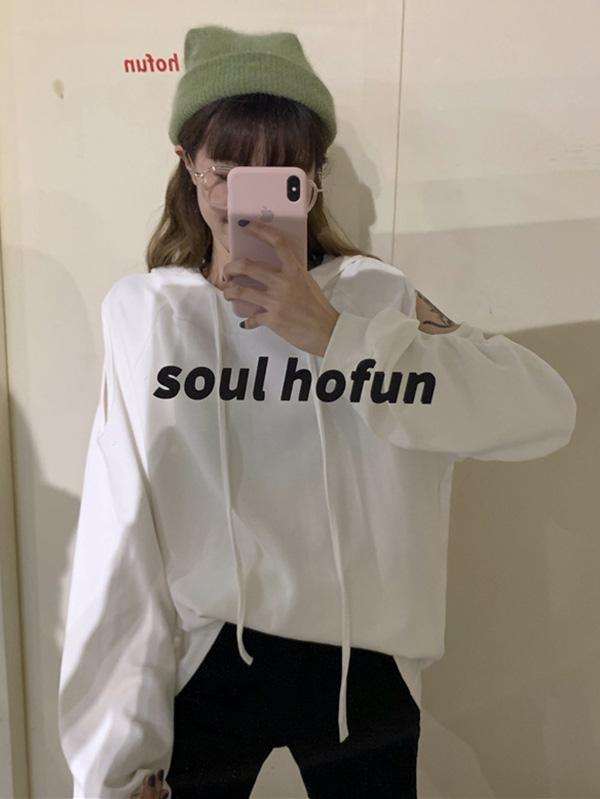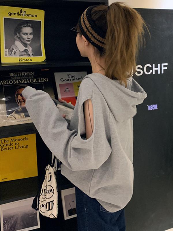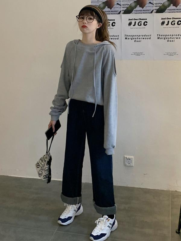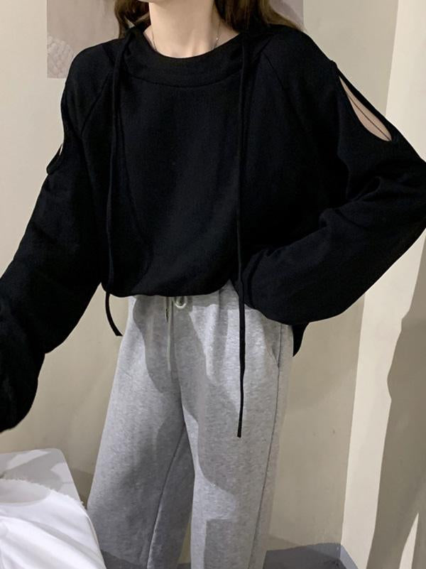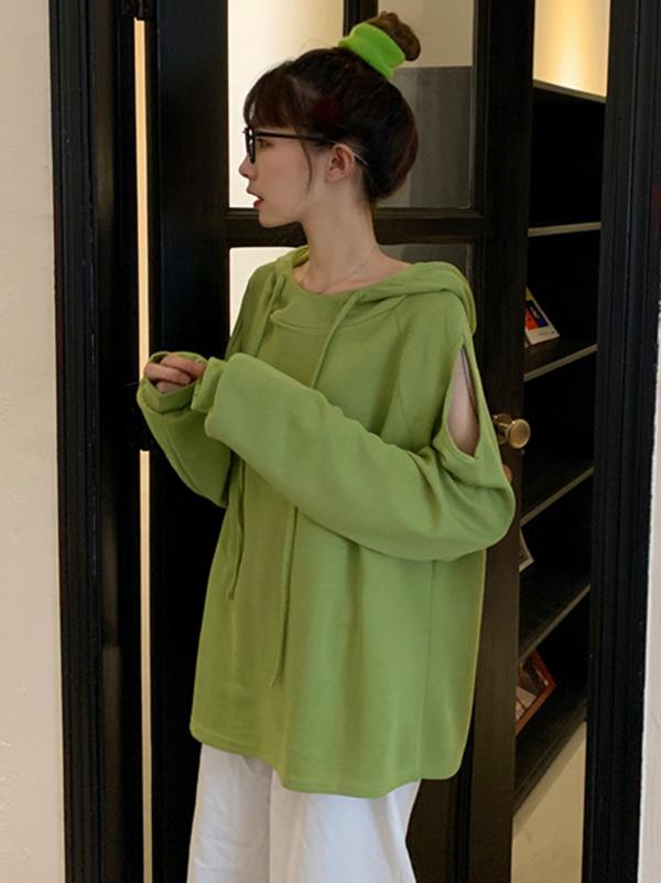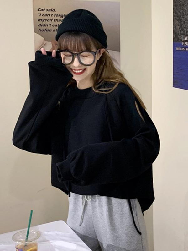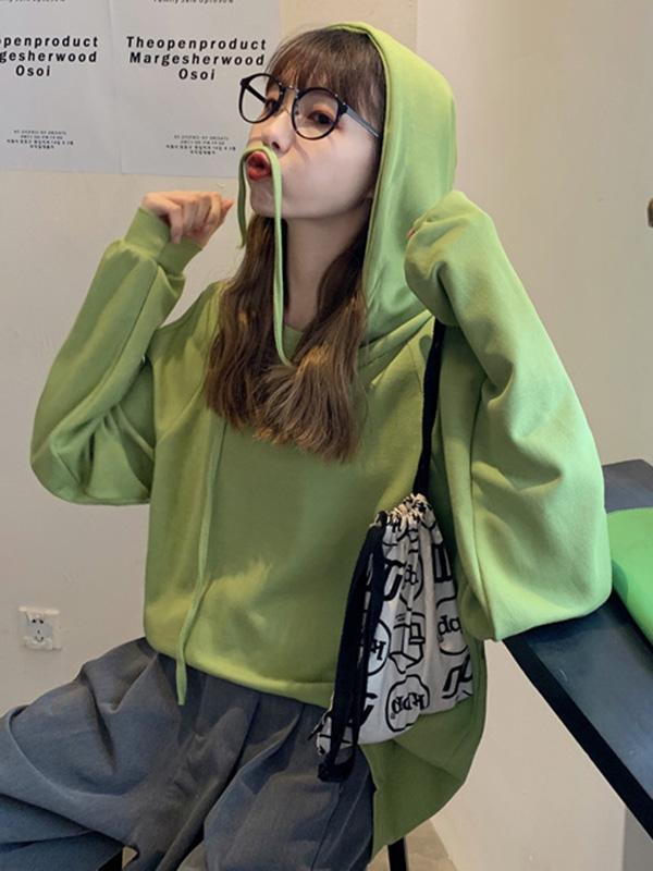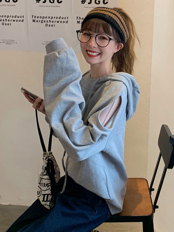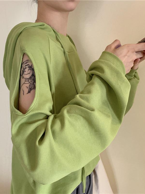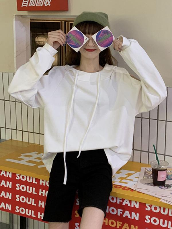 Sweet Strapless Loose Solid Arder Short Long Sleelves Hoodies