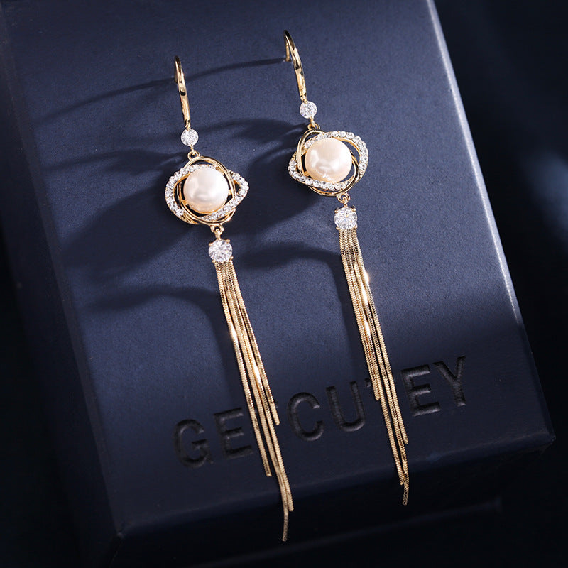 Tassel Earrings female set with zircon Pearl Earrings