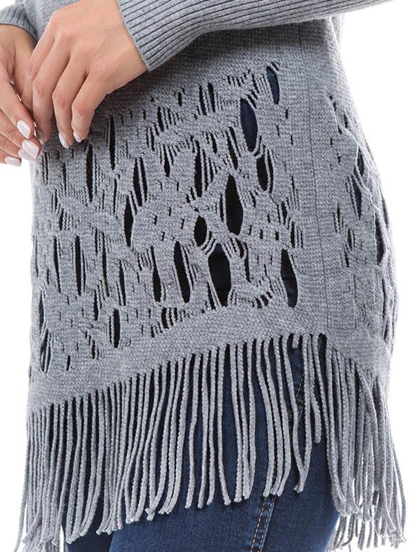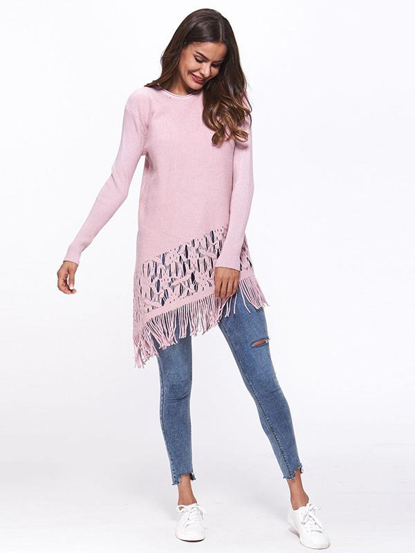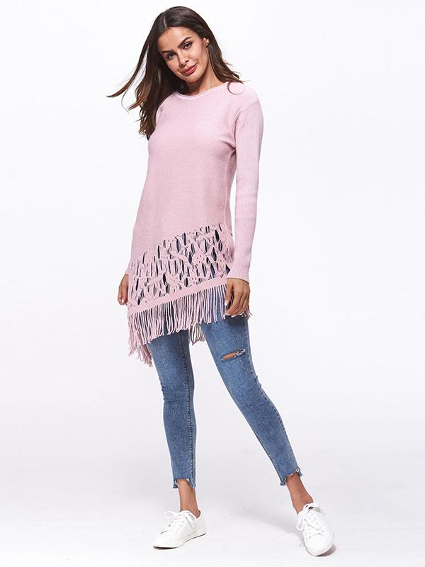 Tasseled Long Sleeves Knitting Sweater Tops