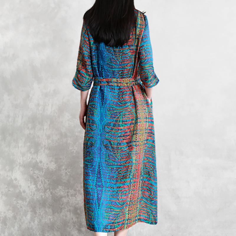 Three Quarter Sleeve Bohemian Printed Dress