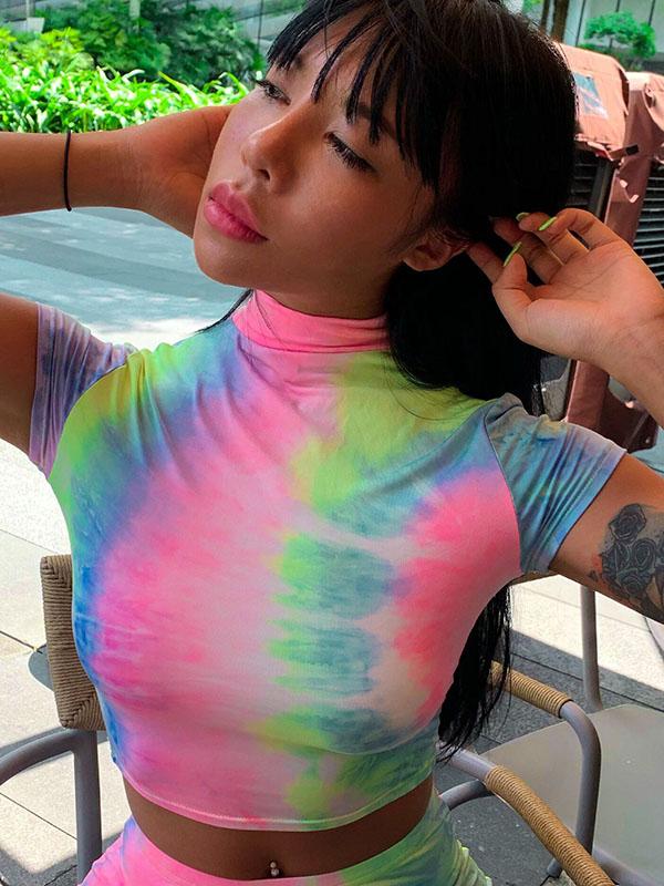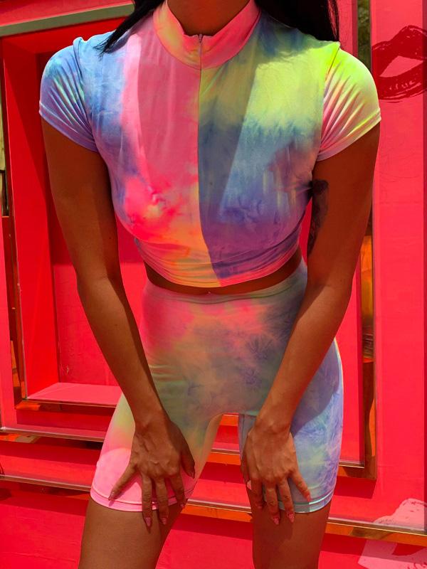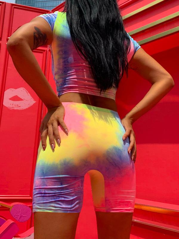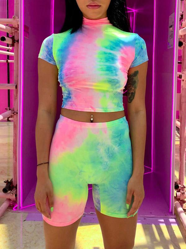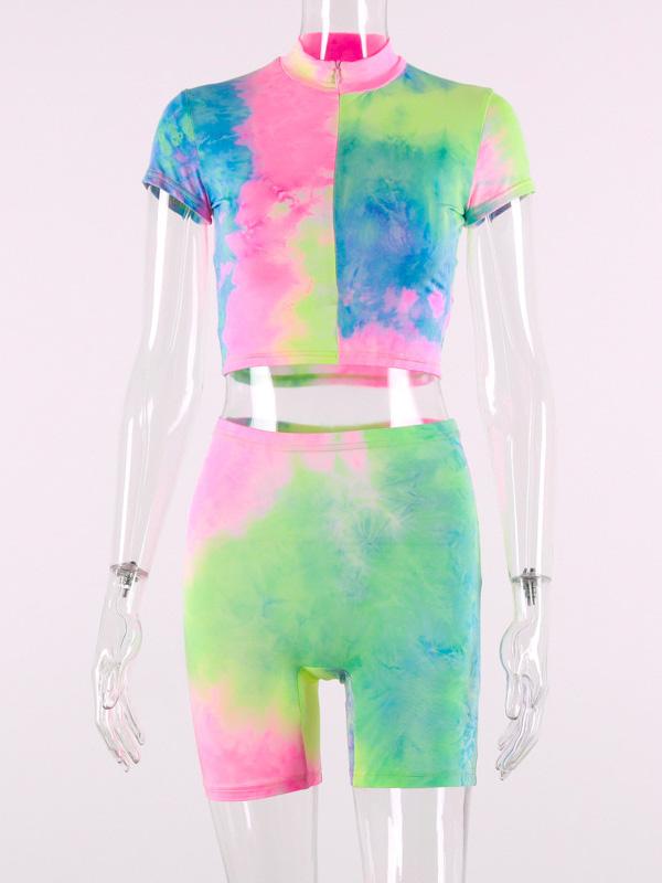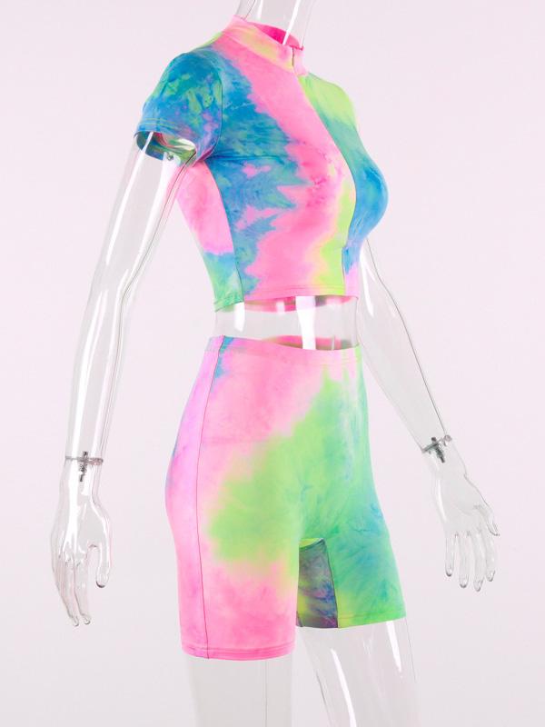 Tie Dye Short Sleeve Tees And Shorts Suits