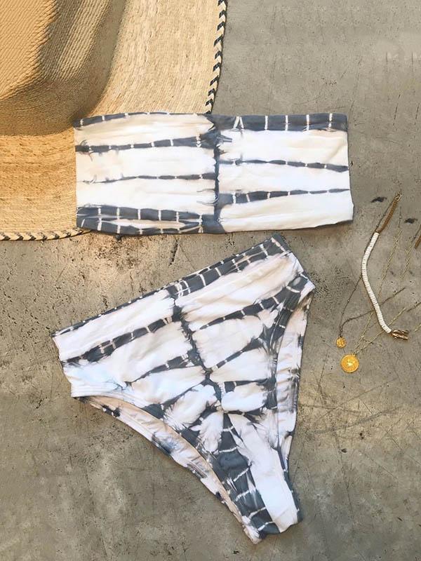 Tie-Dyed Bandeau Split Bikini Swimsuit