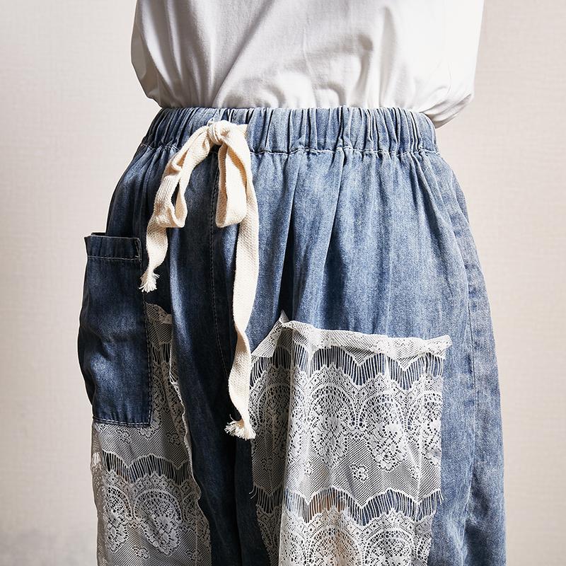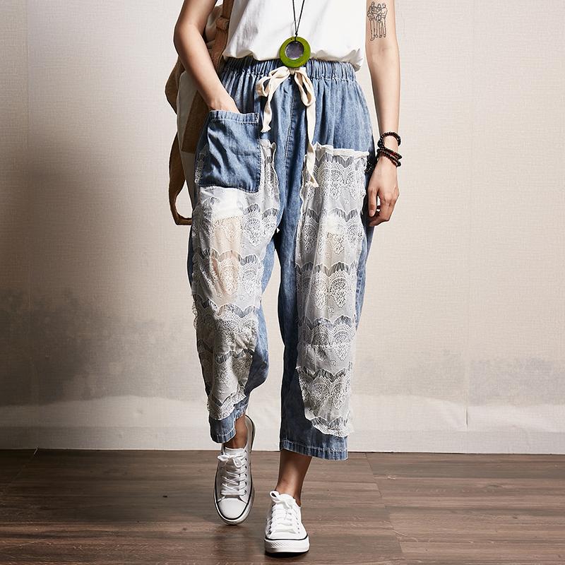 Transparent Lace Stitching Casual Fashion Jeans