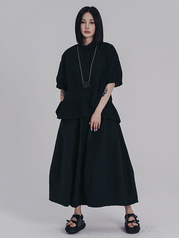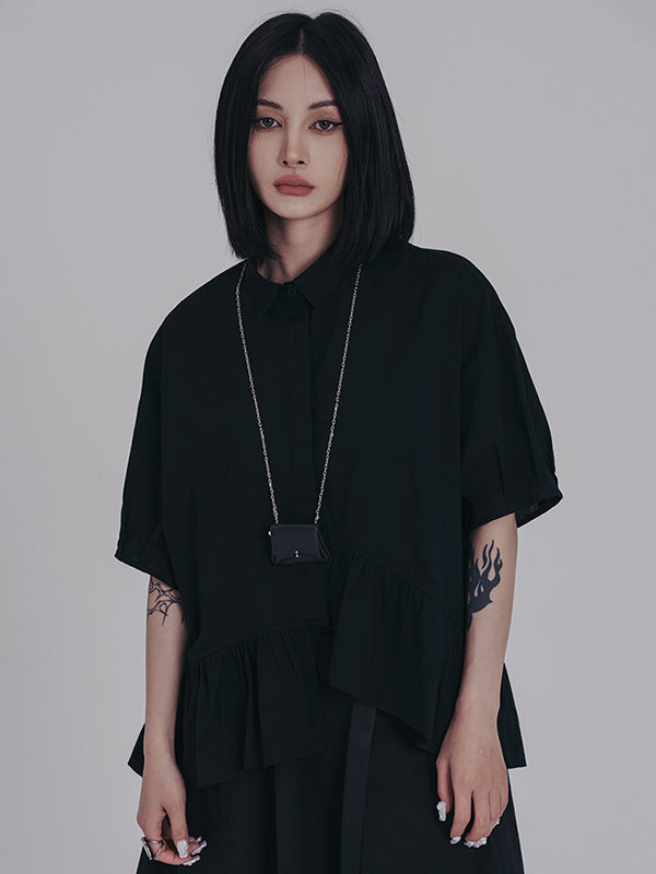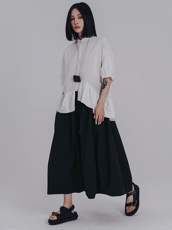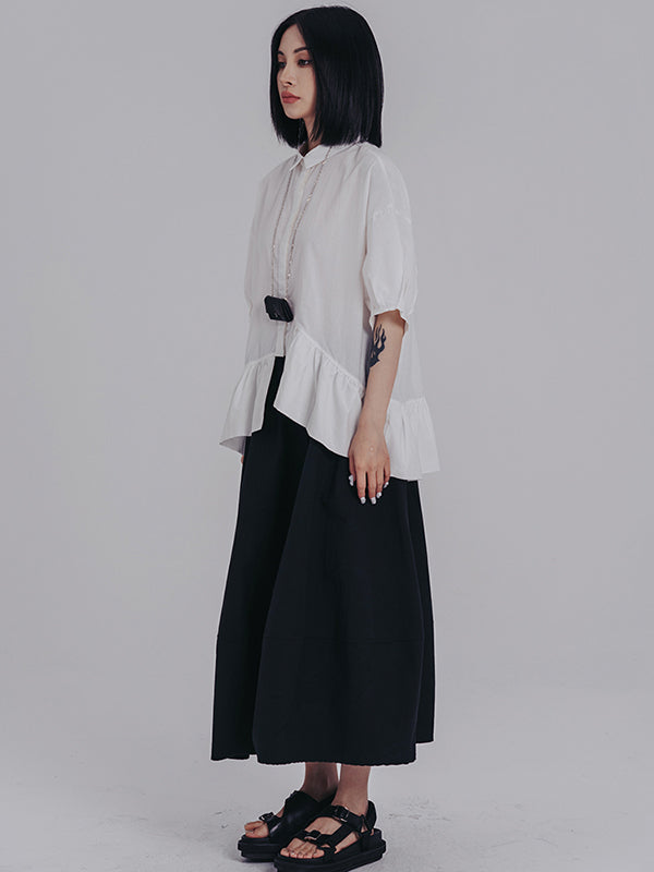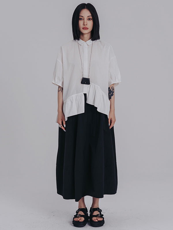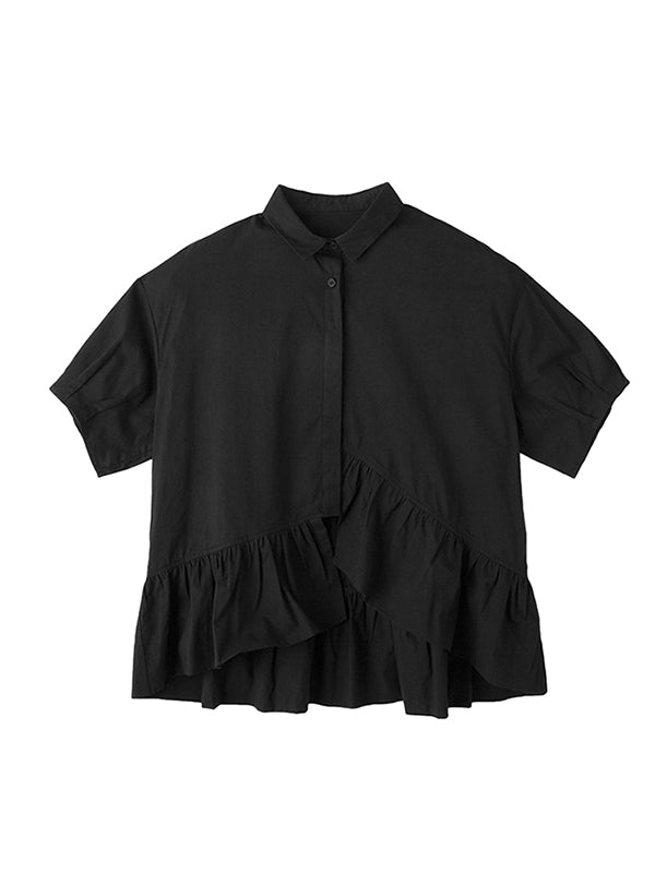 Urban Asymmetric Falbala Black White Solid Color Blouse