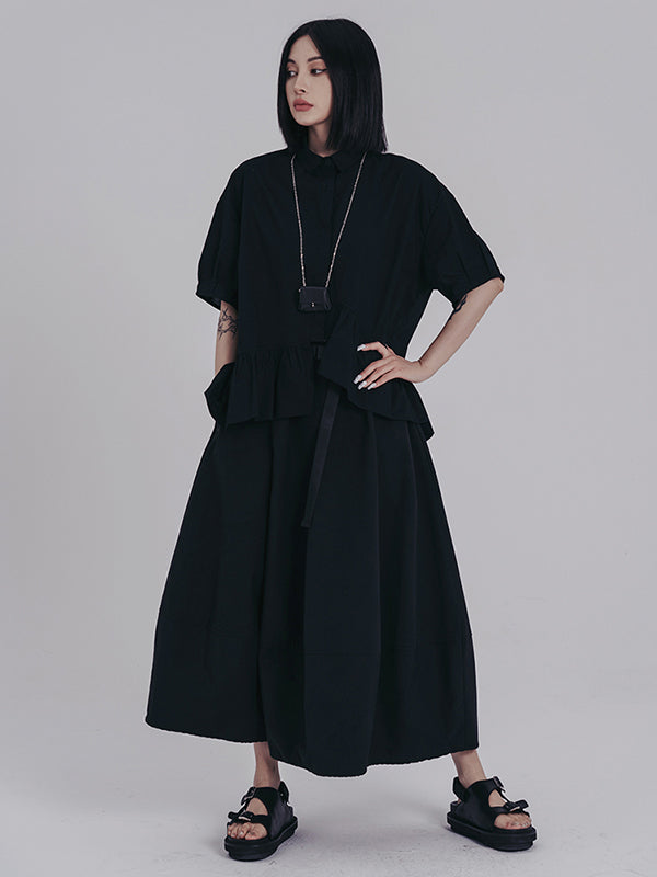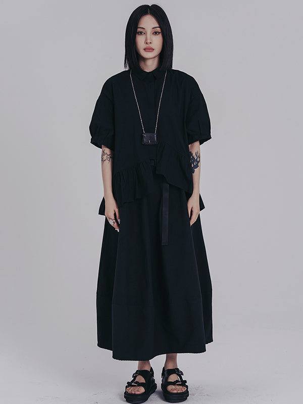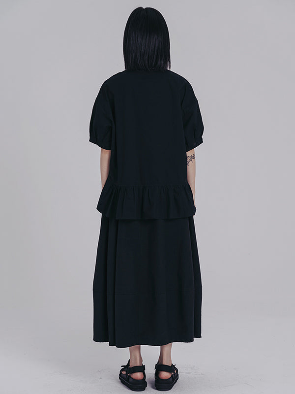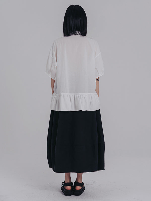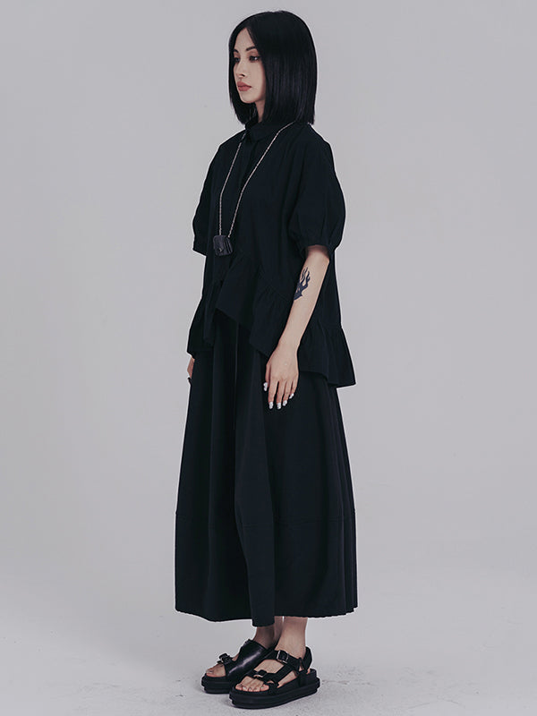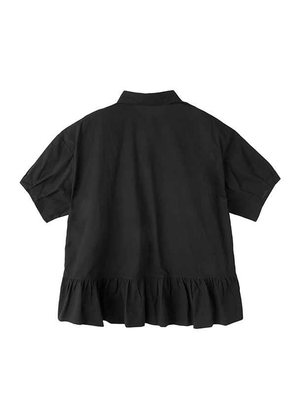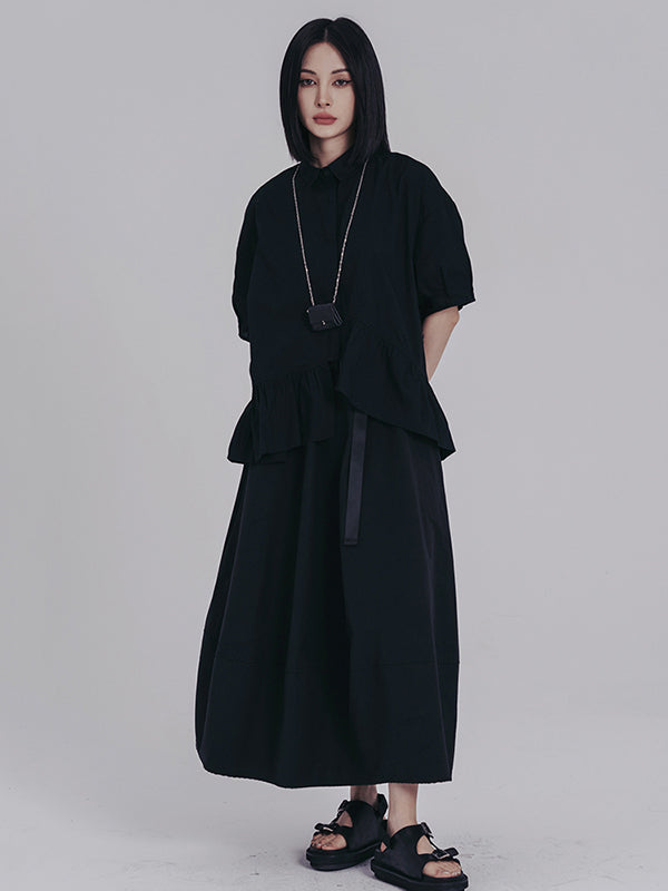 Urban Asymmetric Falbala Black White Solid Color Blouse