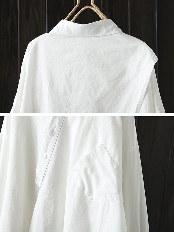 Urban Loose Black White Long Sleeves Irregular Blouse