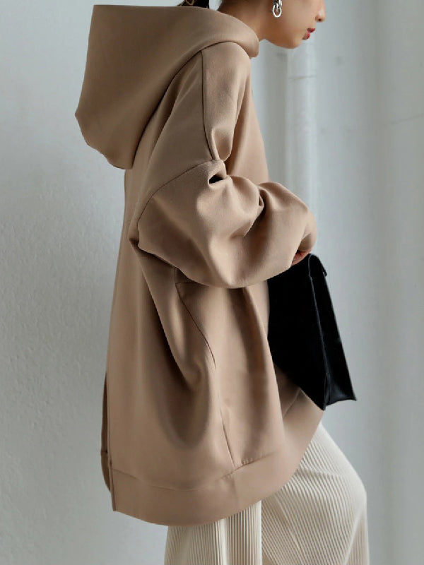 Urban Loose Solid Color Split-Back Long Sleeves Hoodies