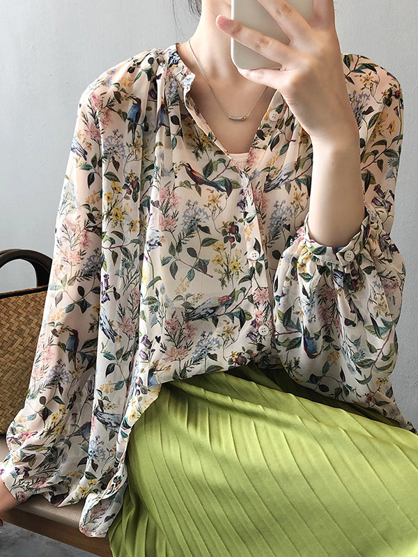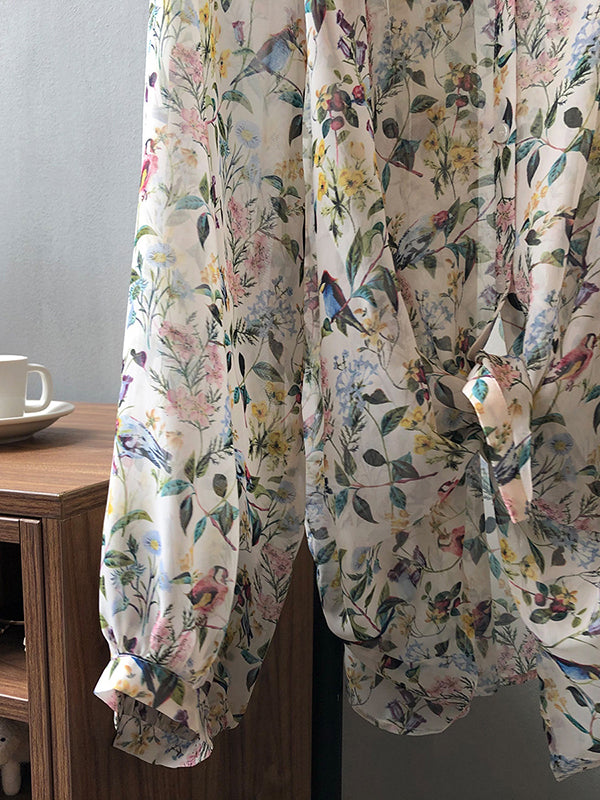 Urban Multi-Colored Floral Printed Puff Sleeves Chiffon Blouse