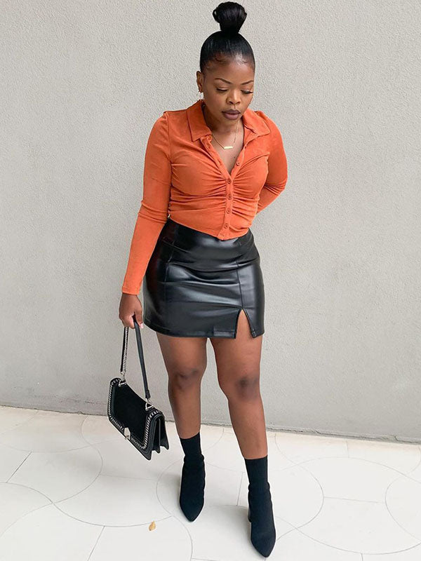 Urban Ruffled Solid Color Lapel Buttoned Long Sleeves Blouse Tops