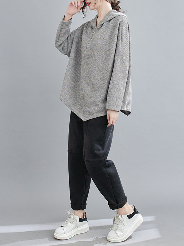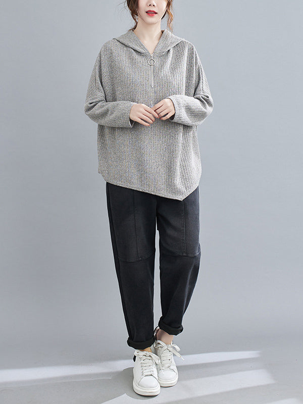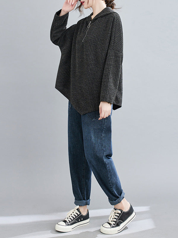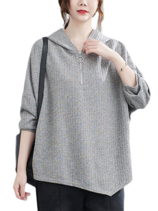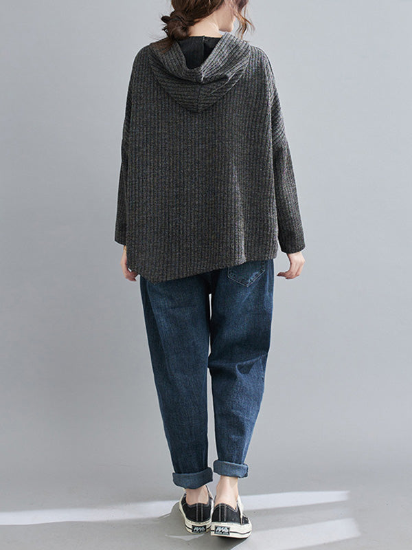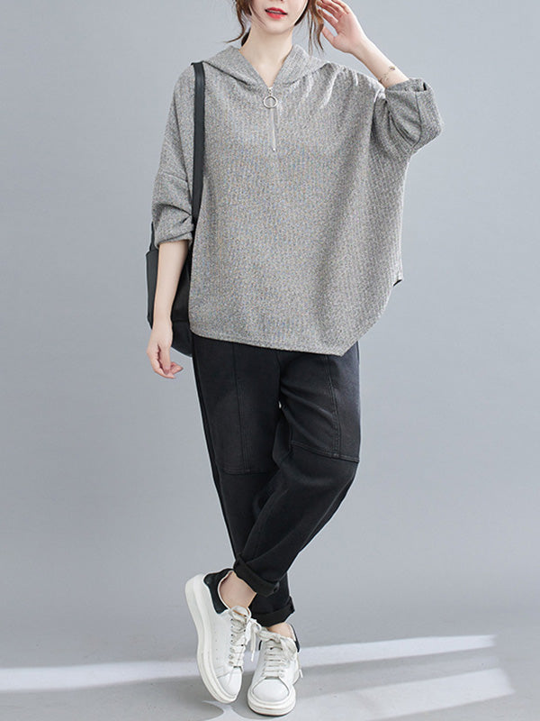 Urban Solid Color Knitting Batwing Sleeves Hoodies Top