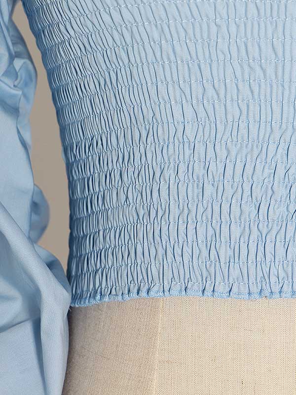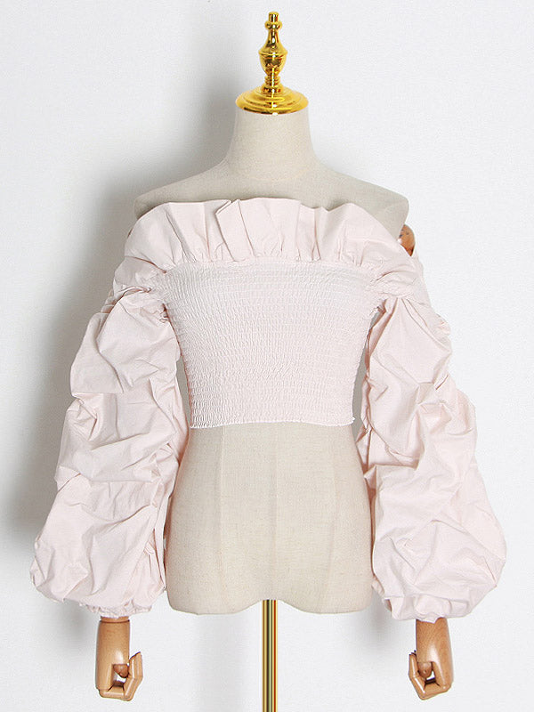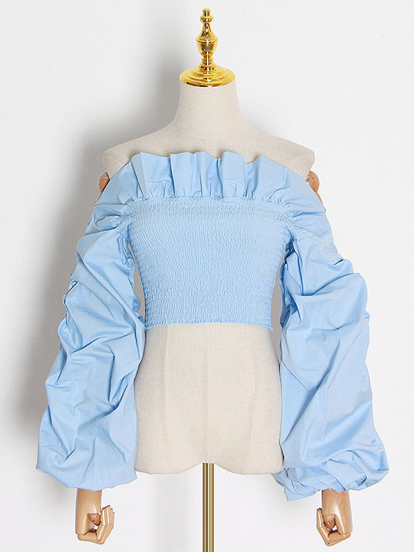 Urban Solid Color Ruffled Off-The-Shoulder Puff Sleeve T-Shirt Tops
