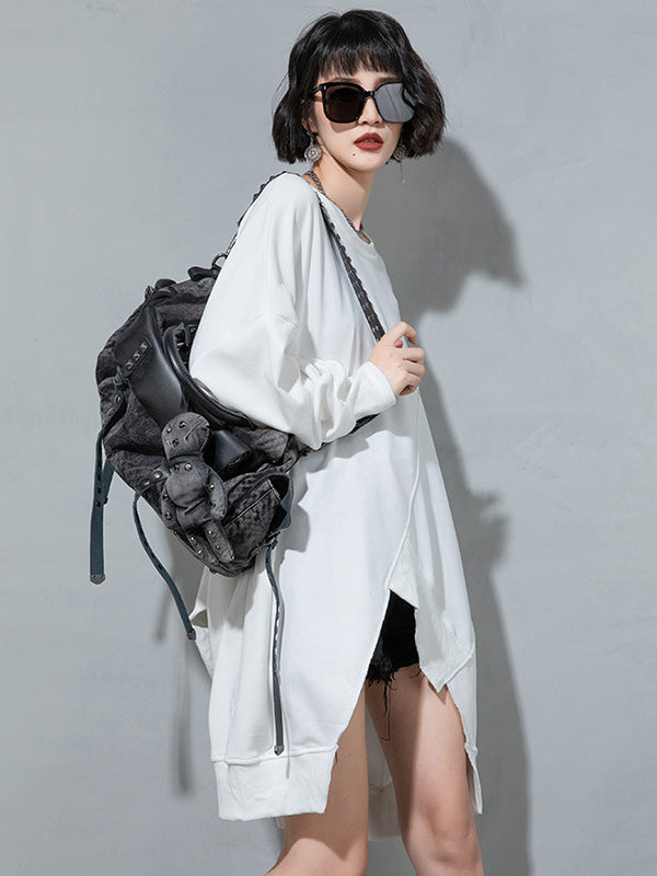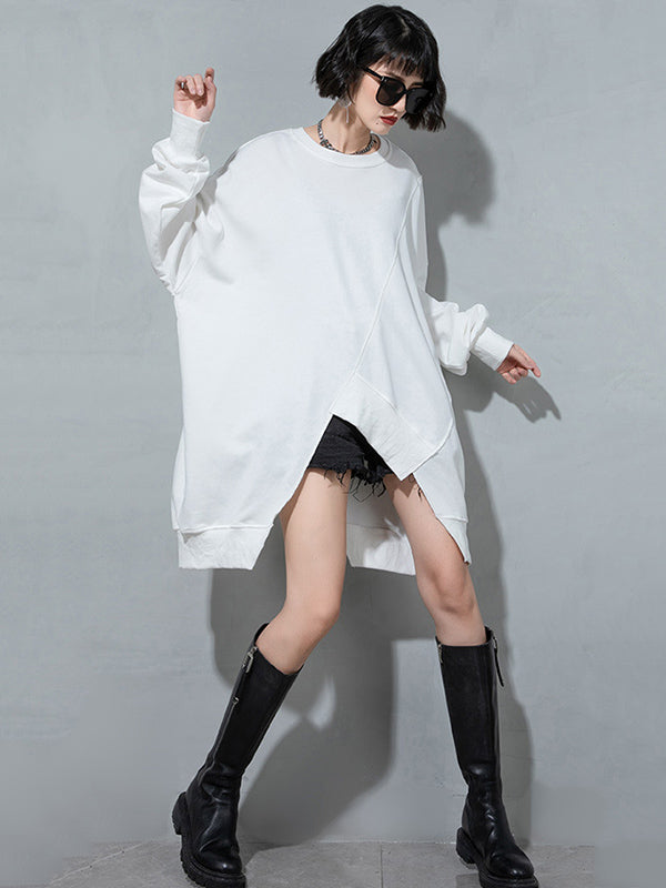 Urban Solid Color Split-Joint Long Sleeve T-Shirt Top