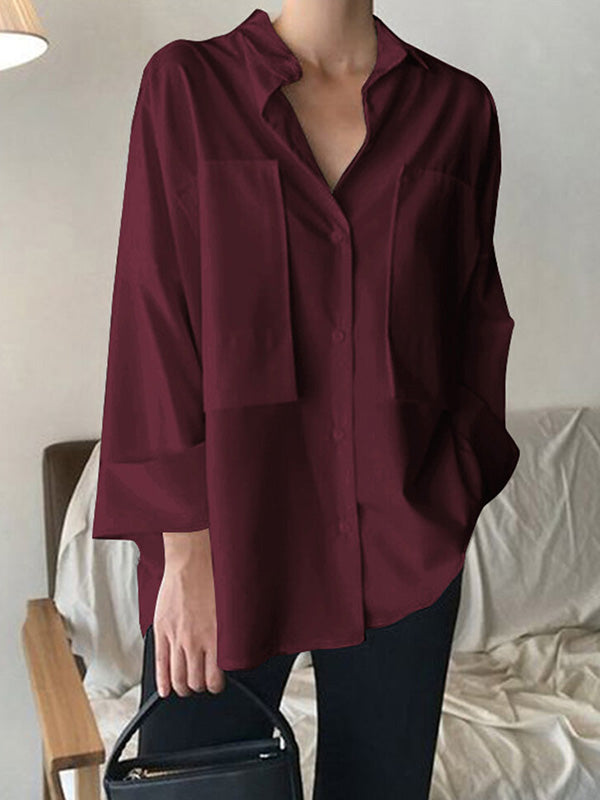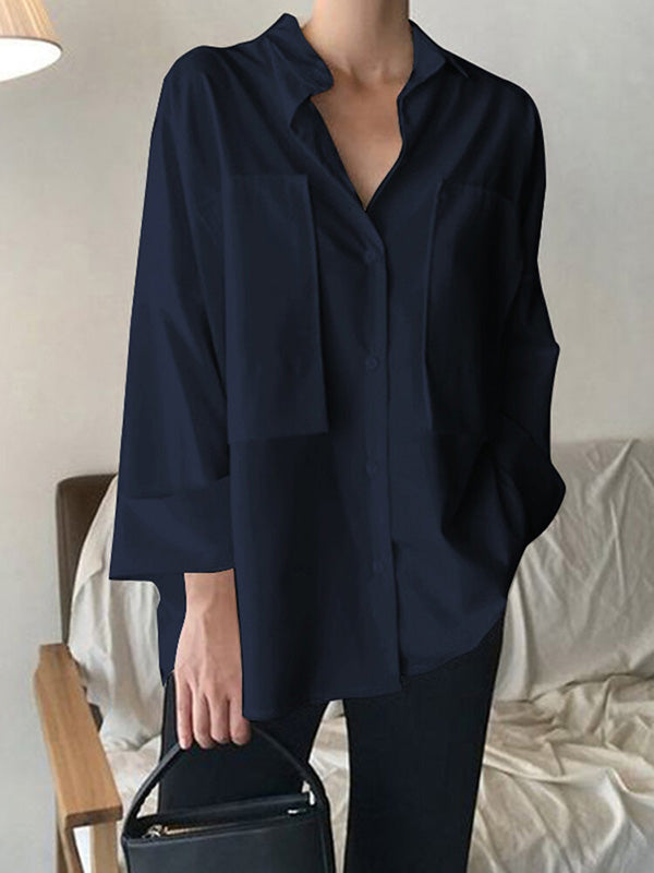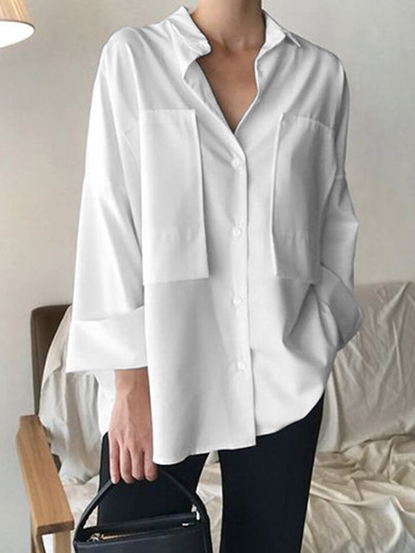 Urban Solid Color With Big Pocket Lapel Long Sleeves Blouses
