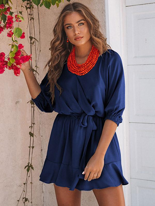 V-neck Casual Bandage Mini Dress