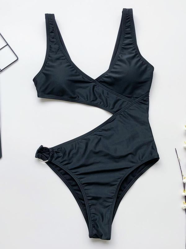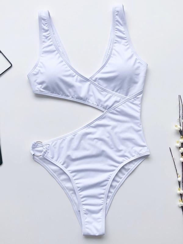 V-Neck Hollow Circular Ring One-Piece Swimwear