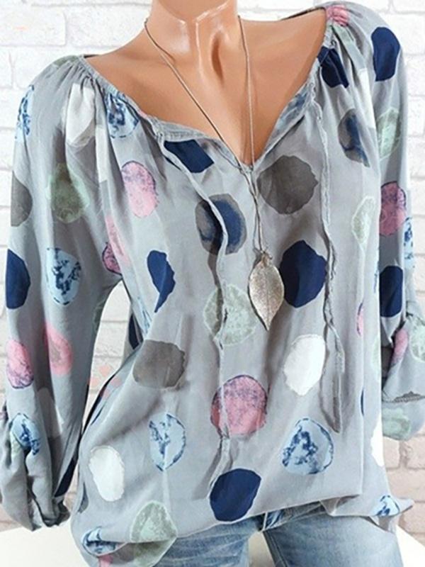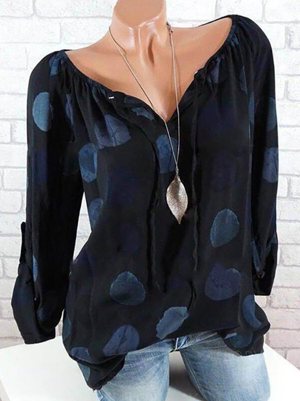 V-neck Lace Long Sleeves Floral Blouses&shirts Tops