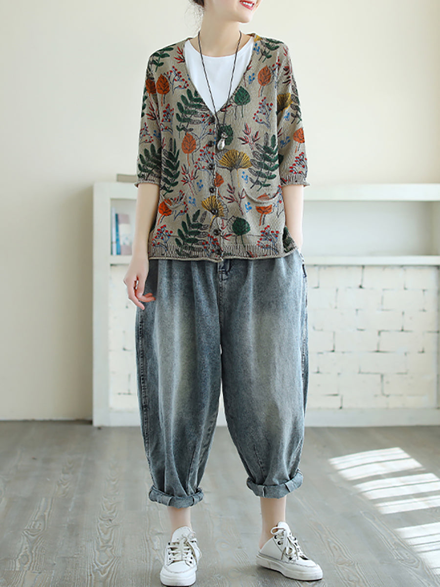 Plus Size Printed Half Sleeve Women Knitted Shirt