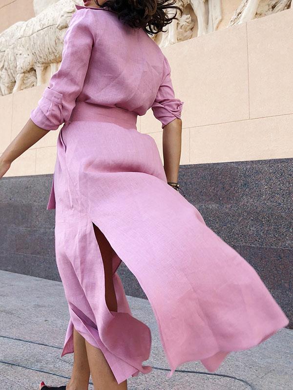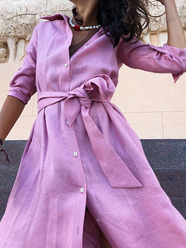 V-neck Long Sleeves Shirt Belted Maxi Dress