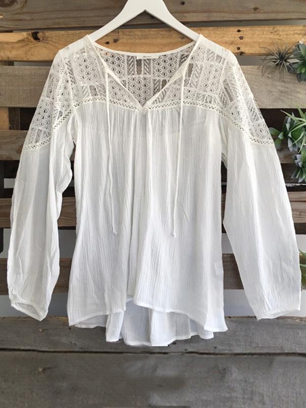 V-neck Long Sleeves Tassel Blouse Shirt Tops
