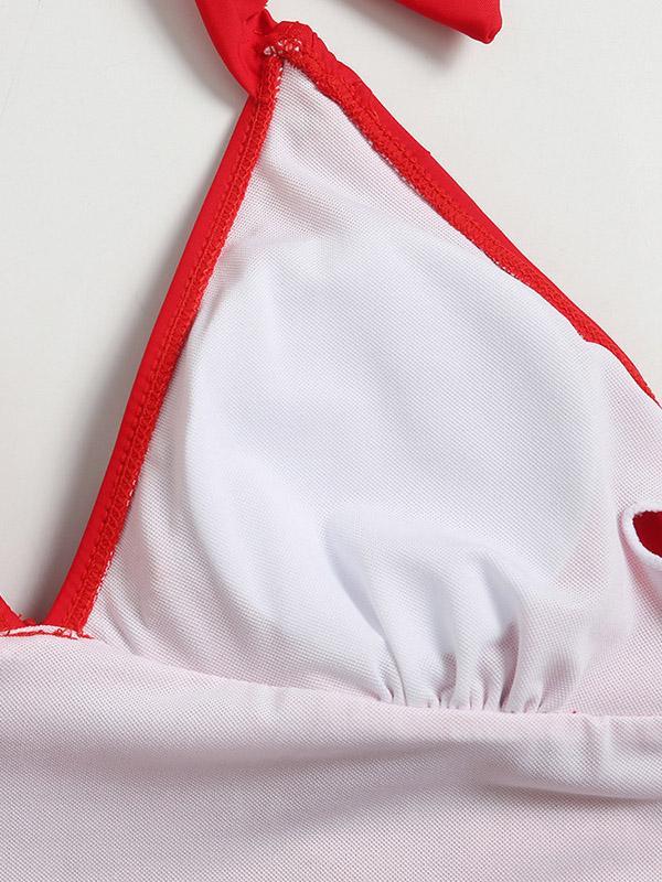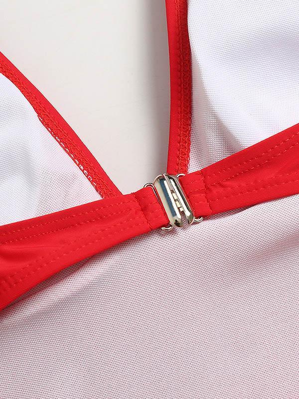 V-Neck Ruffled Bandage One-Piece Swimsuit