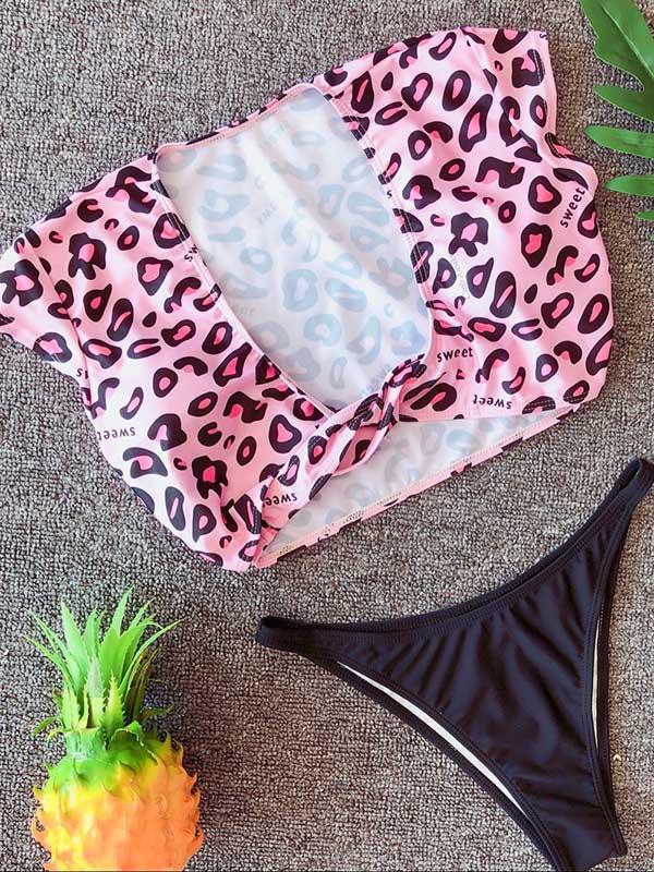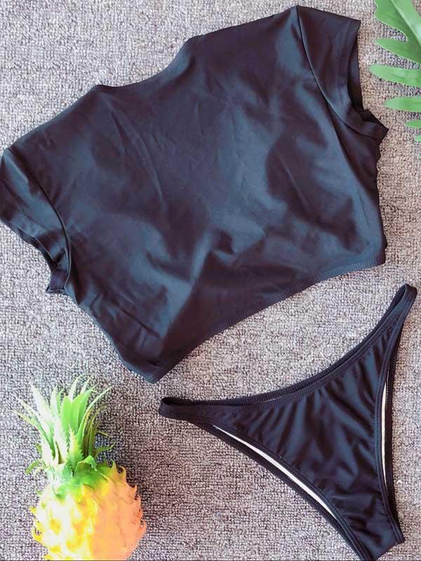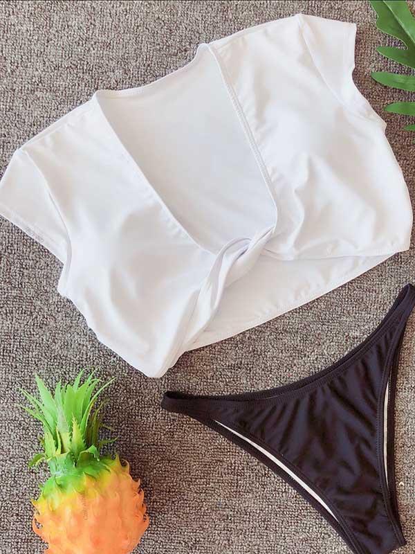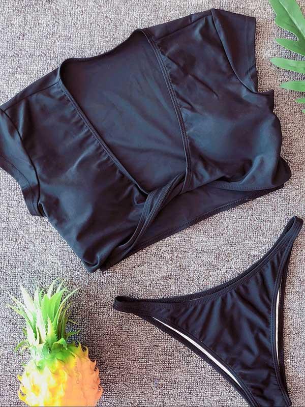 V-neck Short Sleeves Bikinis Swimwear