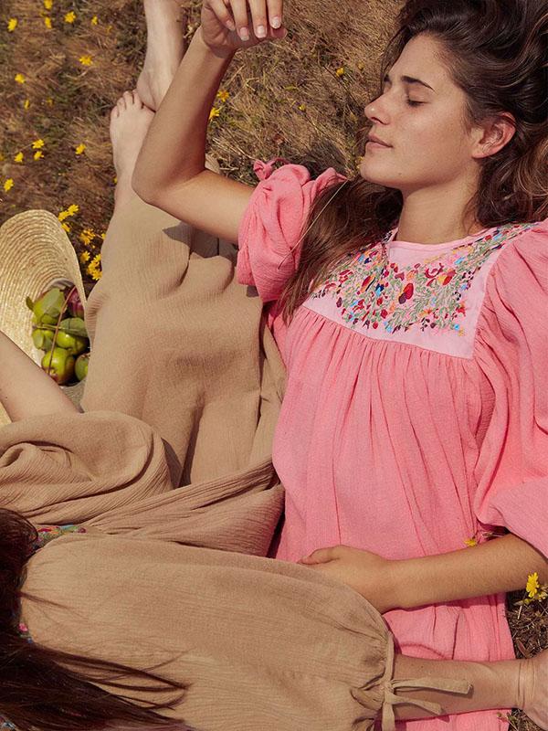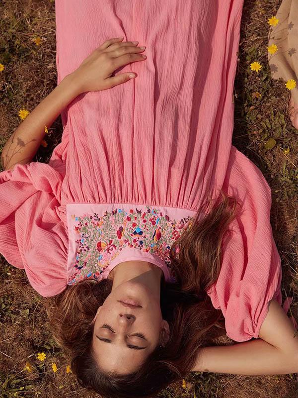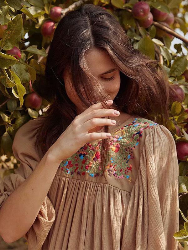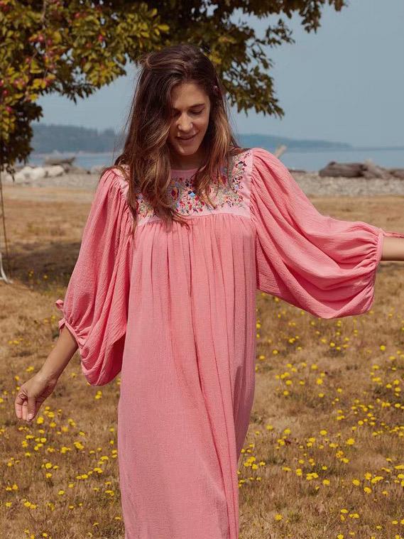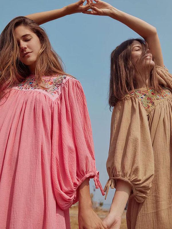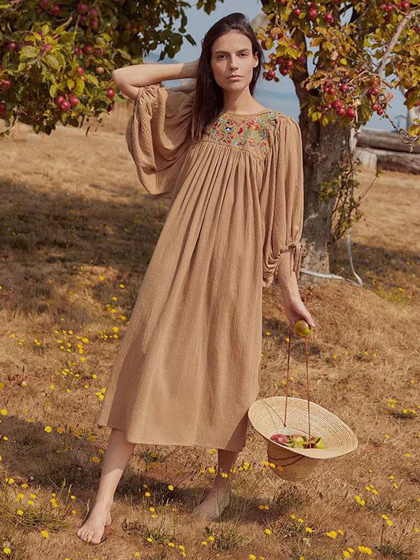 Vacation Embroidered Long Sleeves Midi Dress