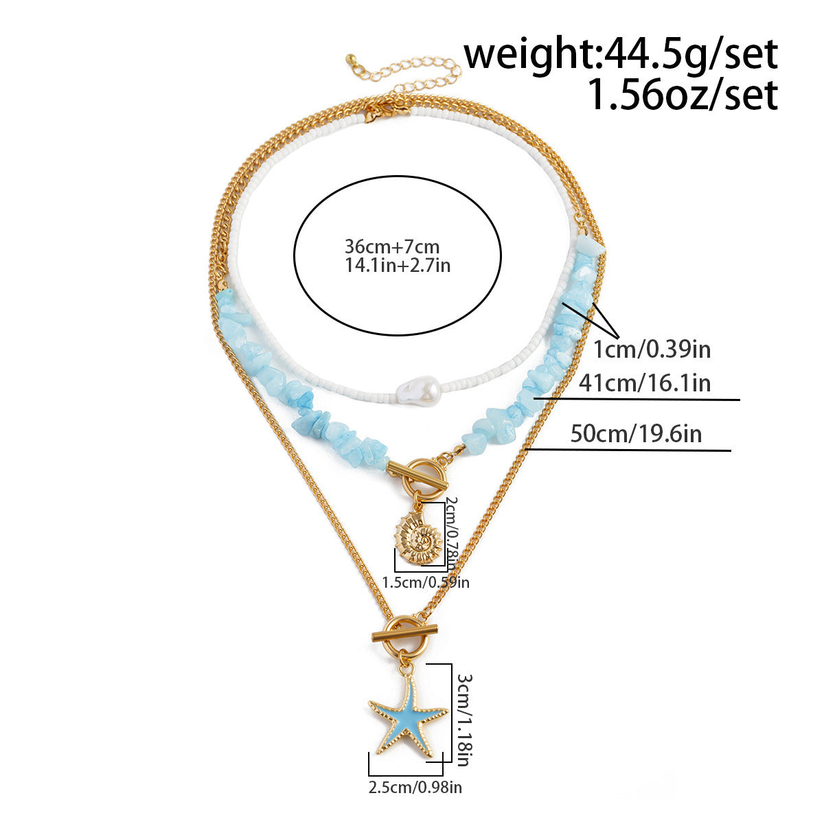 Vacation Star Alloy turquoise Iron Cuban Link Chain Curb Chain Layered Necklaces