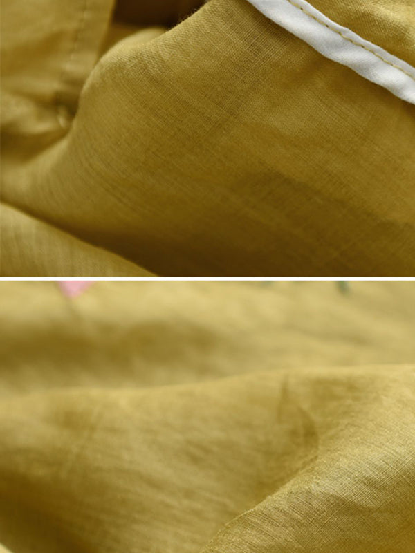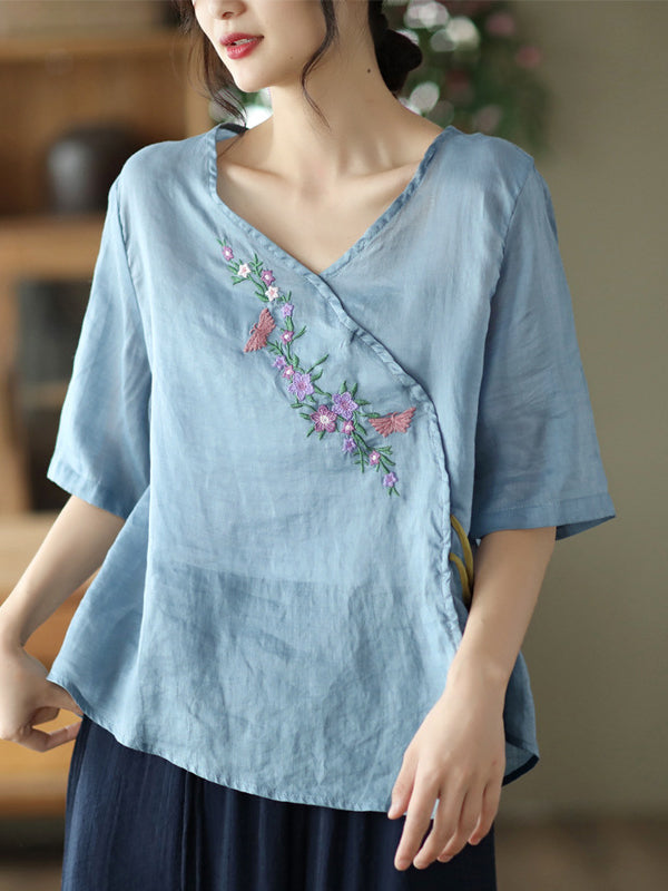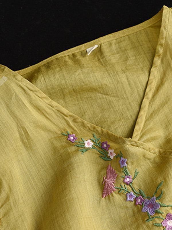 Vintage Artistic Retro Ramie Cotton Embroidered T-Shirt Top