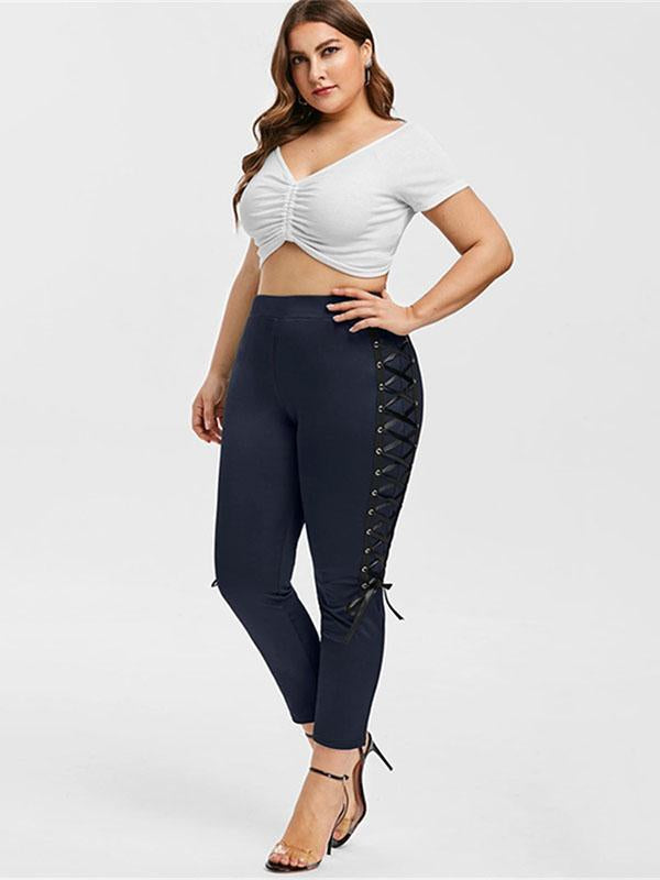 Vintage Bandage Solid Leggings Pants