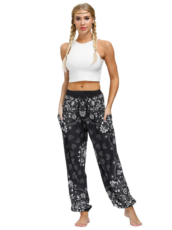 Vintage Bohemia Black Printed High Waisted Knickerbockers& Yoga Pants