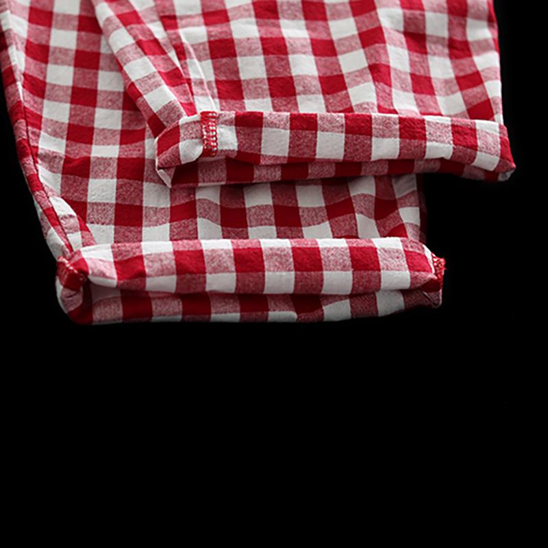 Vintage Cotton Linen Plaid Ankle-Length Pants