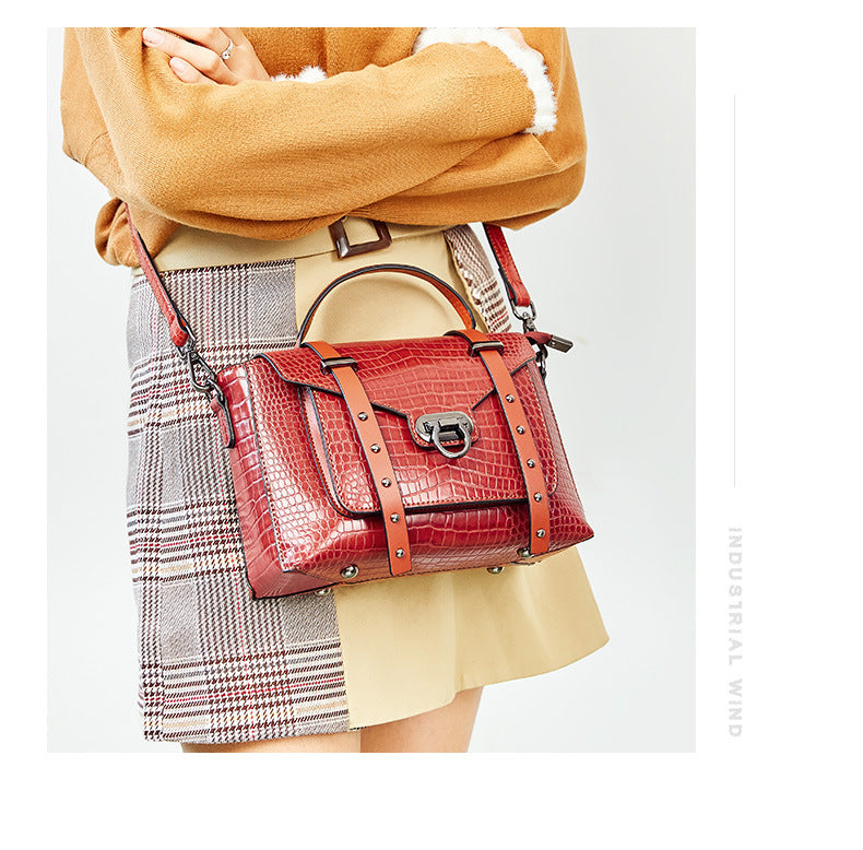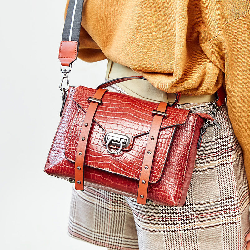 Vintage crocodile lock Single Shoulder Messenger Bag