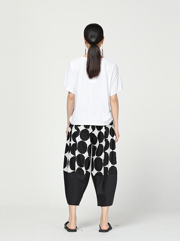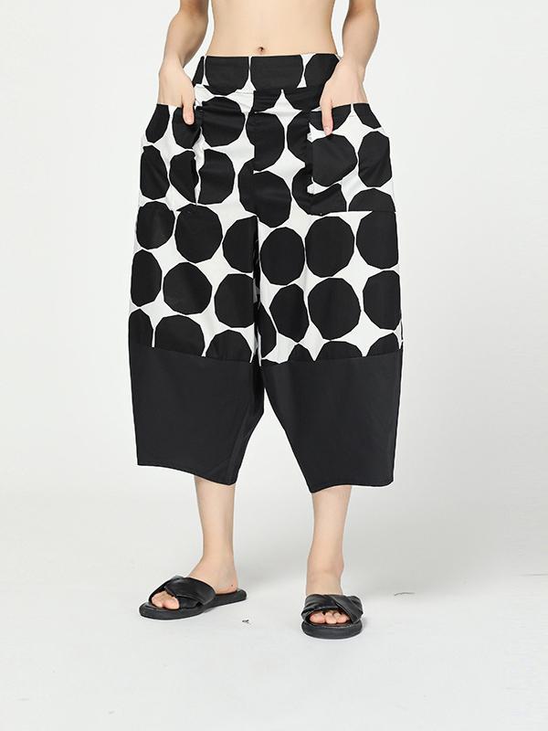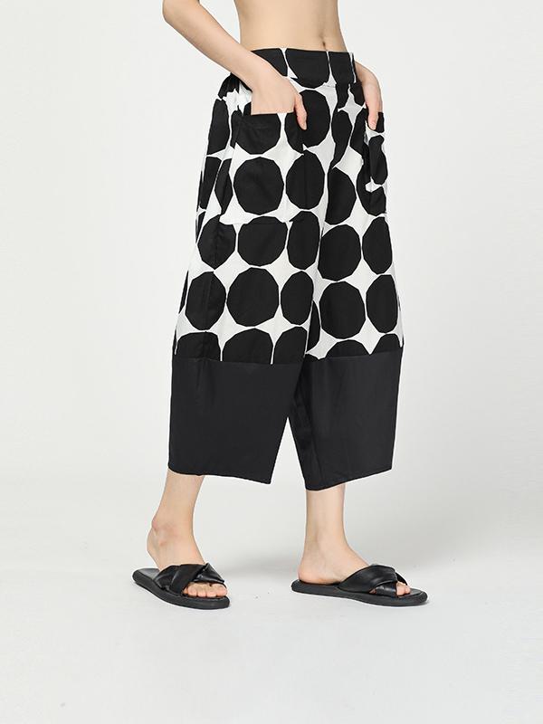 Vintage Dot Cropped Splicing Straight Leg Pants