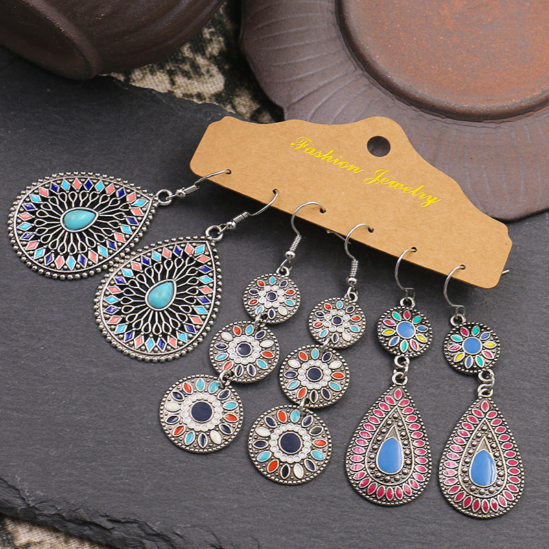 Vintage earrings round dripping oil bohemian earrings