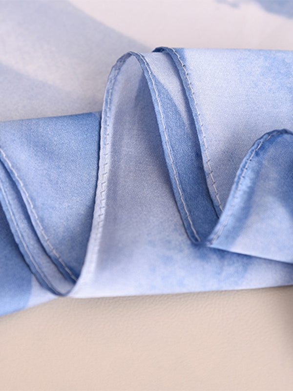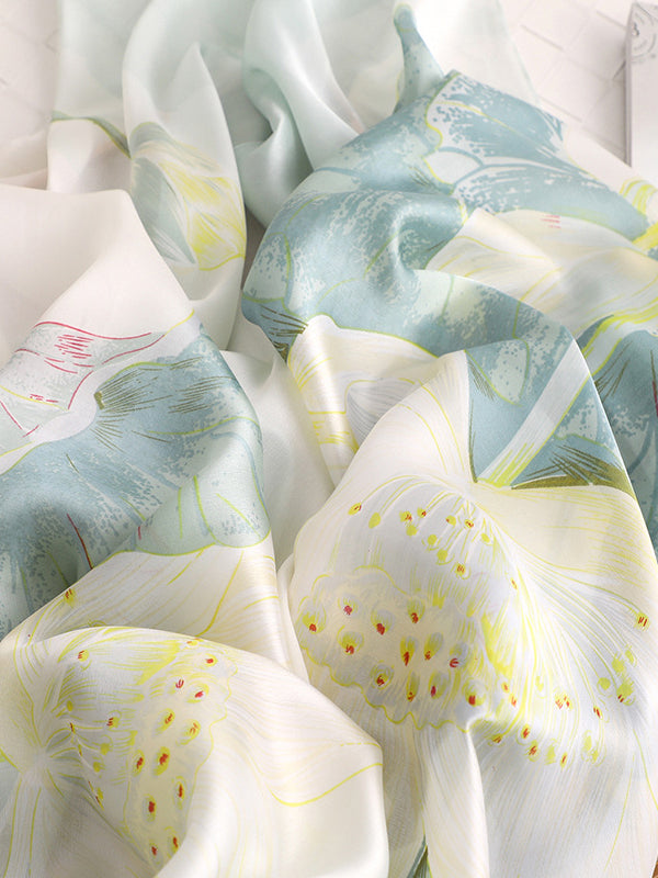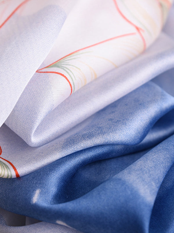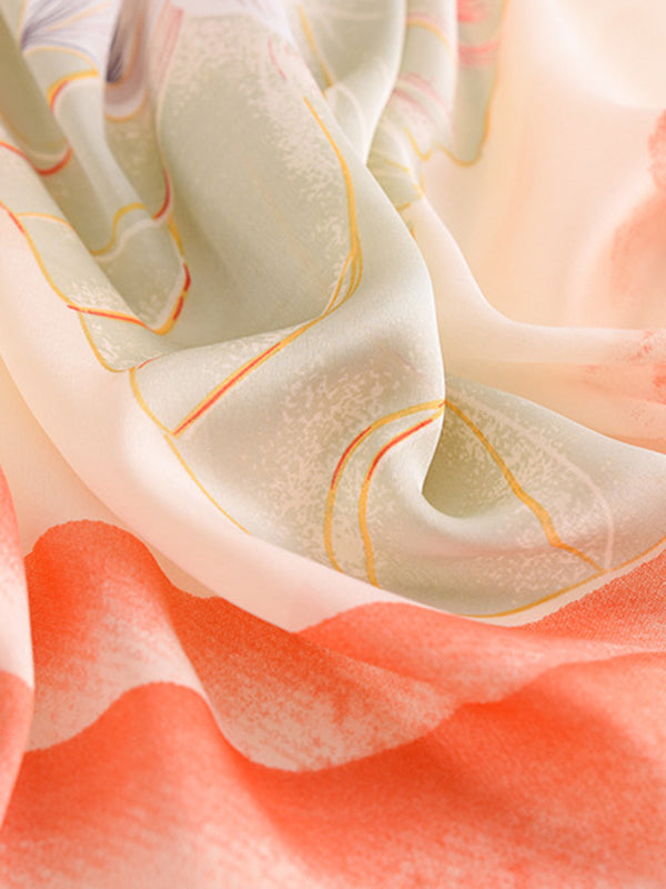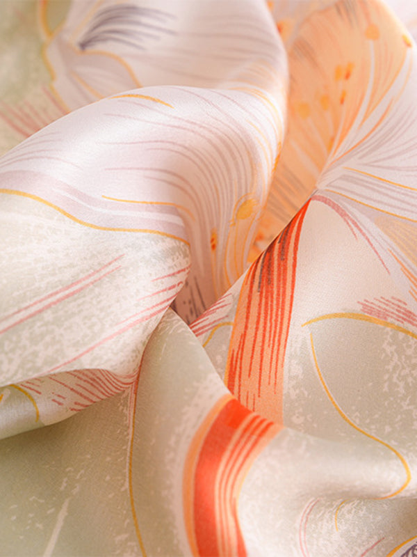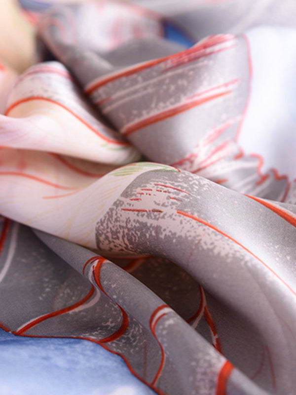 Vintage Floral Printed Silk Imitation Shawl Scarf