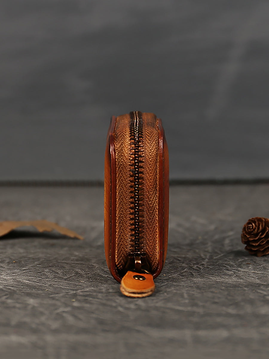 Vintage Genuine Leather Solid Zipper Wallet