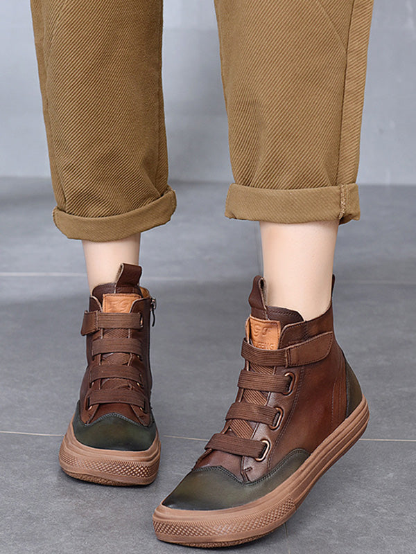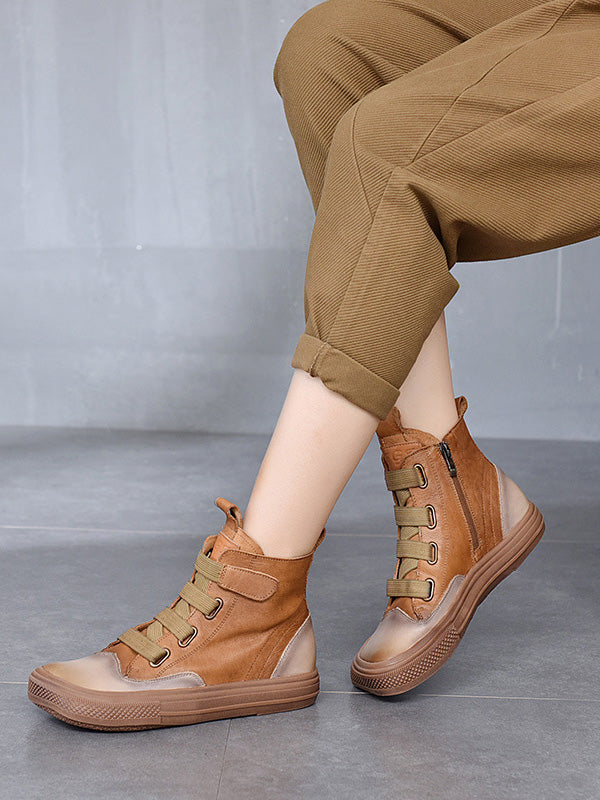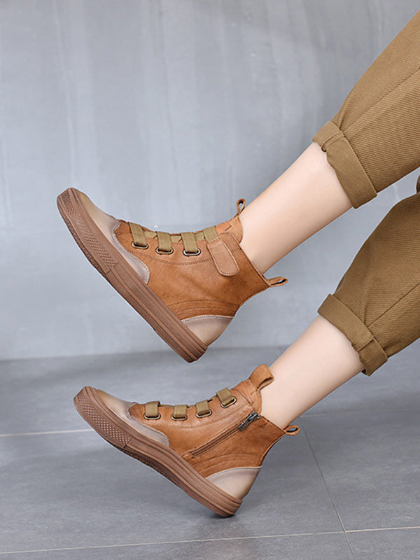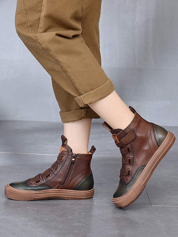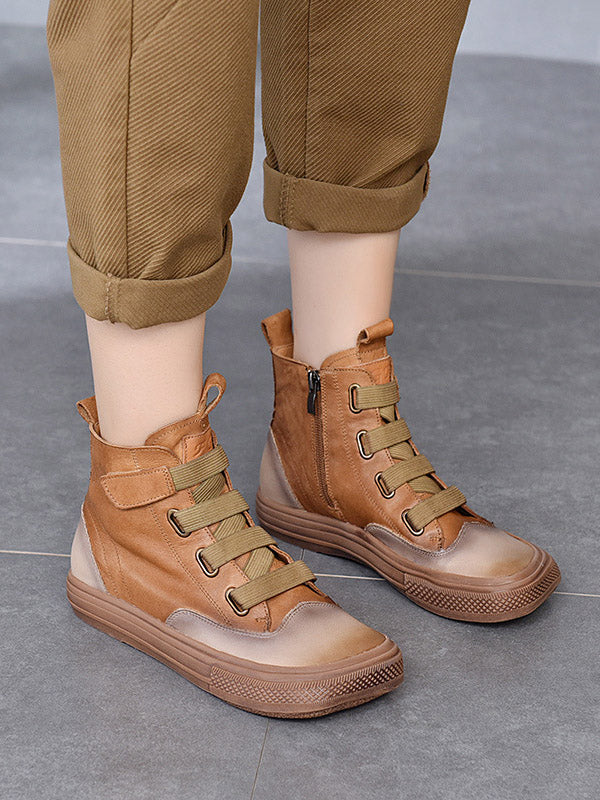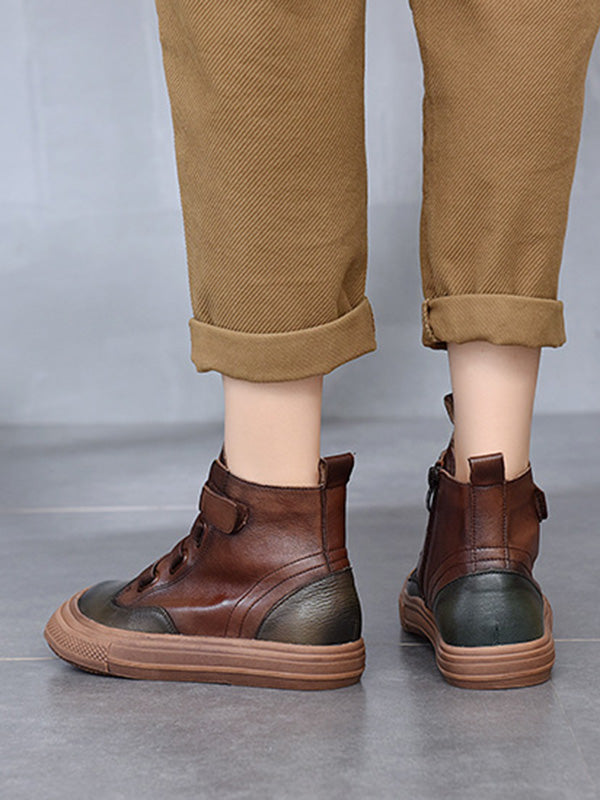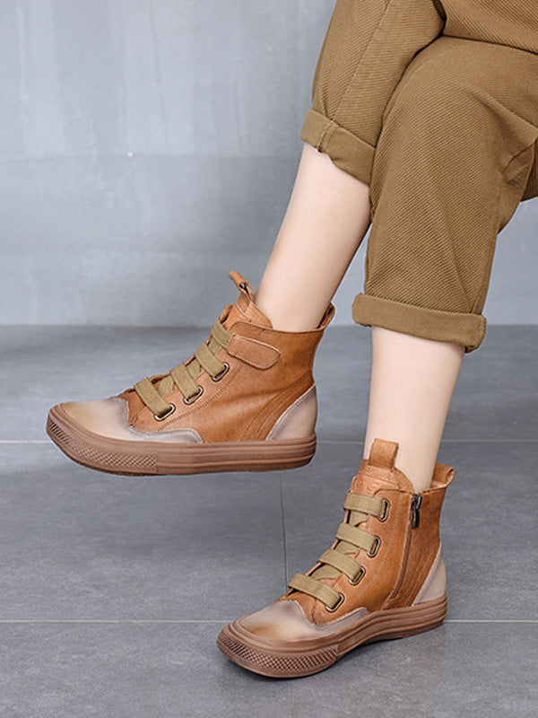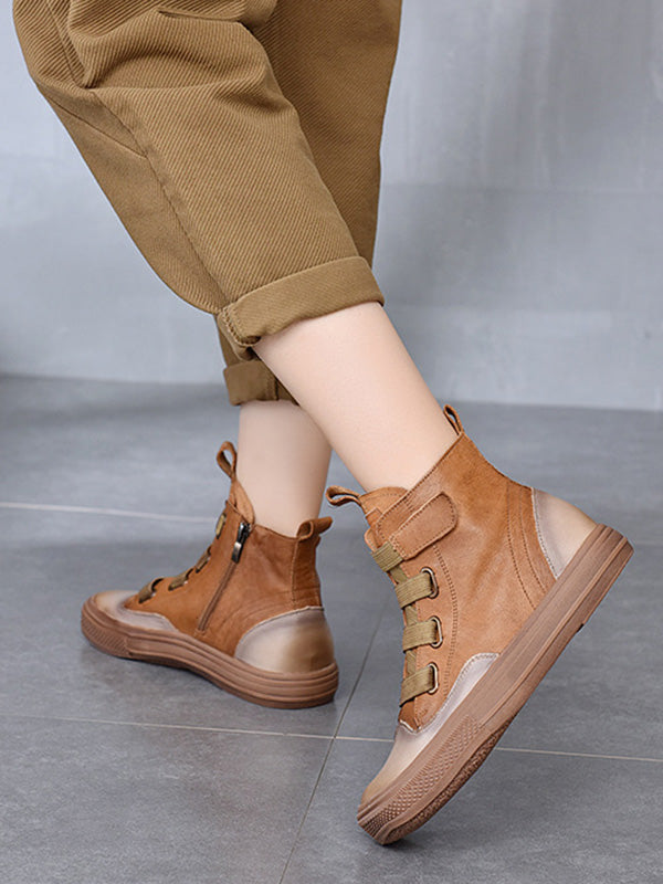 Vintage Leisure Fashion Zipper Cow Leather Short Boots