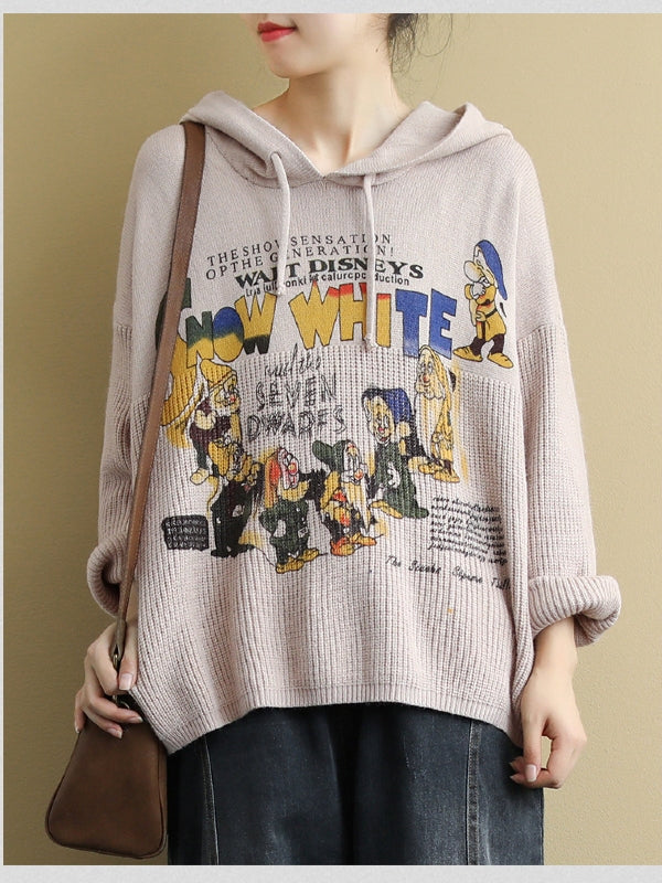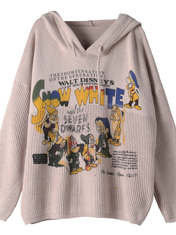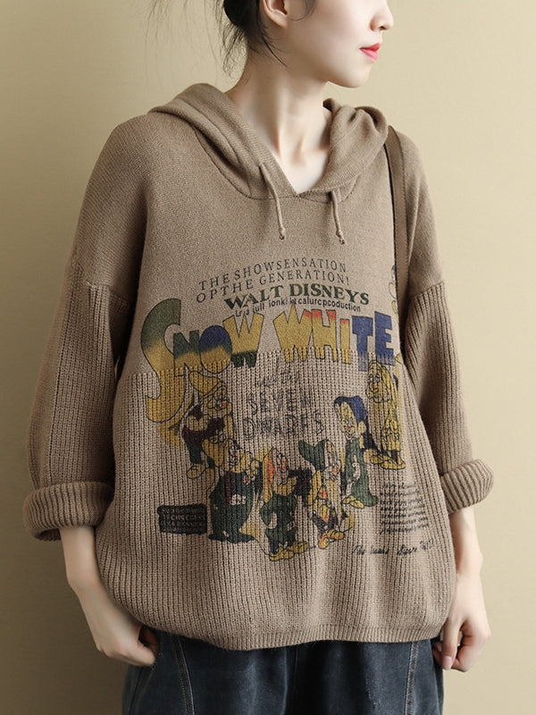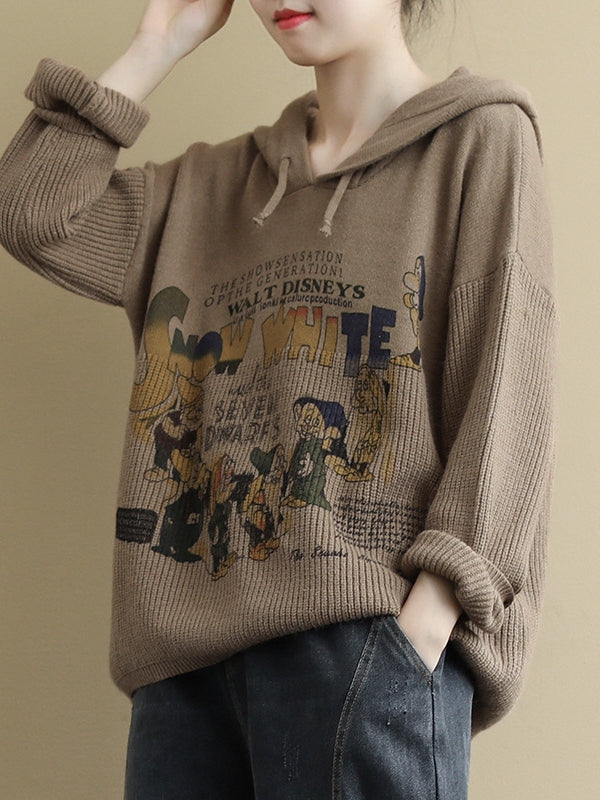 VINTAGE LETTER PRINTED CASUAL KNIT HOODIE SWEATER