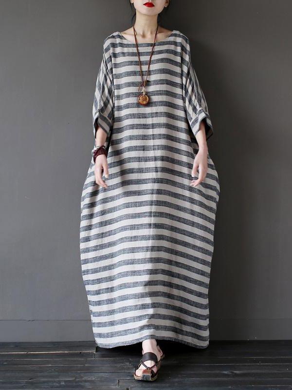 Vintage Loose Striped Dress
