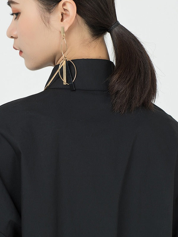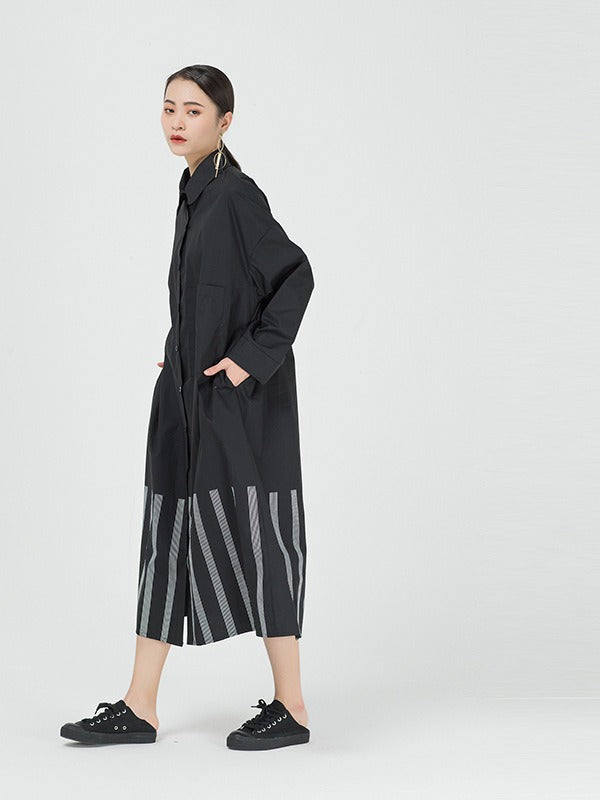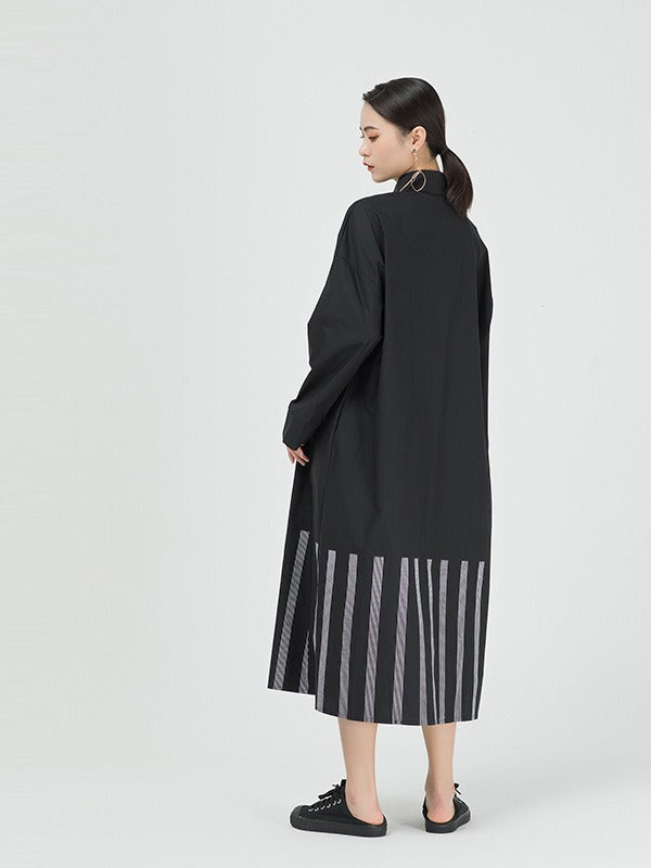 VINTAGE LOOSE STRIPED SPLICING SHIRT DRESS