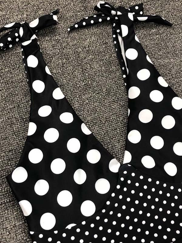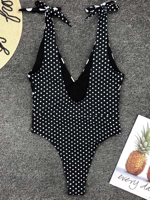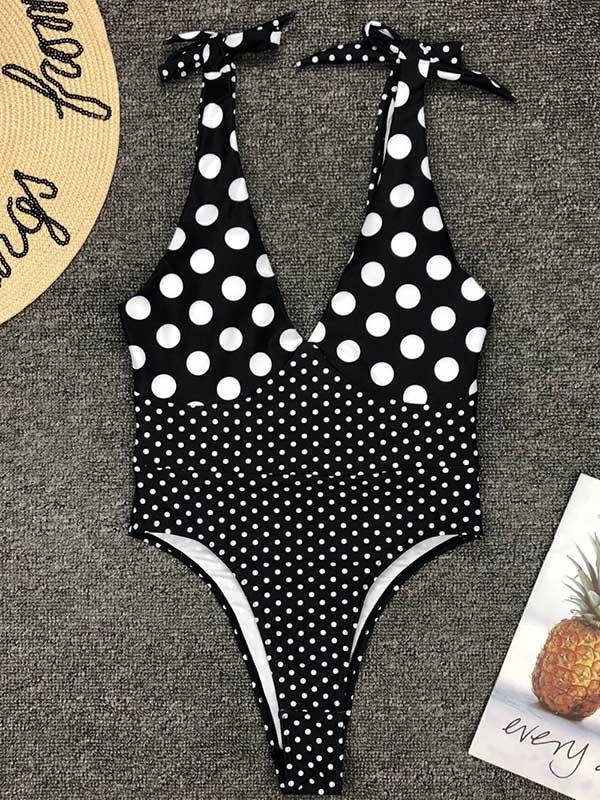 Vintage Polka-Dot V-neck One-piece Swimsuit