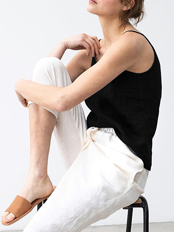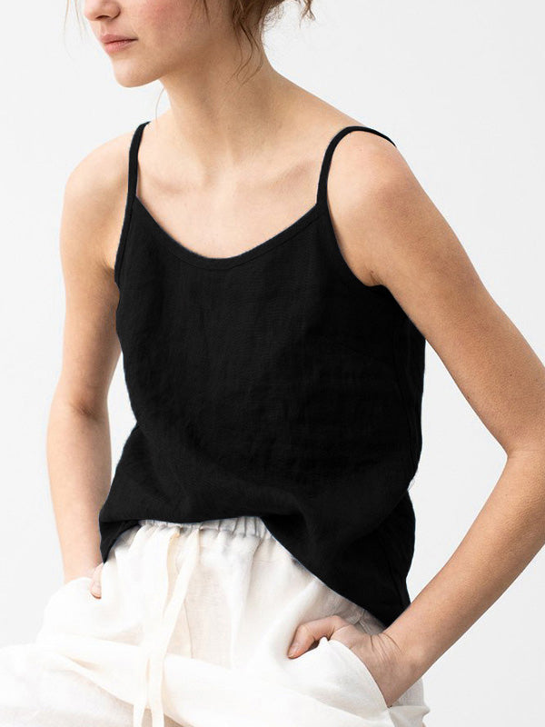 Vintage Ramie Cotton Spaghetti-Neck Round-Neck Mini Dress